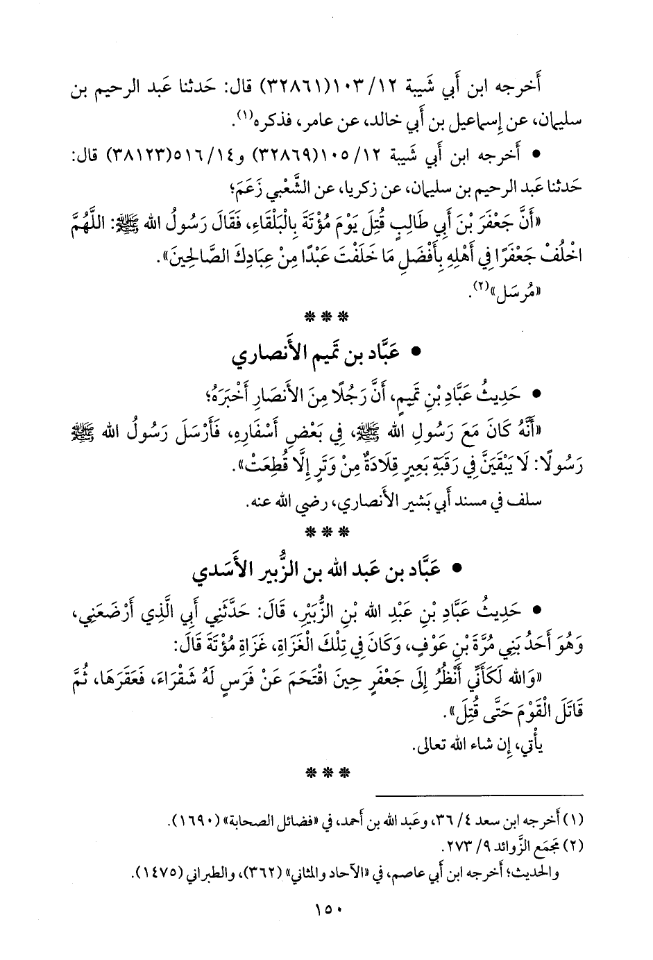 • حديث عباد بن عبد الله بن الزبير، قال: حدثني أبي الذي أرضعني، وهو أحد بني مرة بن عوف، وكان في تلك الغزاة، غزاة مؤتة قال: