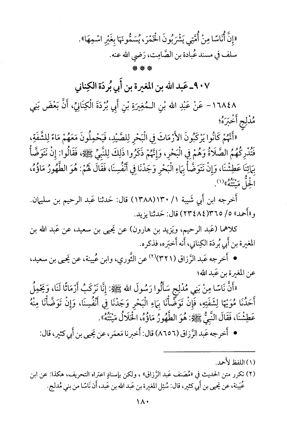 (¬٢) تكرر متن الحديث في «مصنف عبد الرزاق»، ولكن بإسناد اعتراه التصحيف، هكذا: عن ابن عُيينة، عن يحيى بن أبي كثير، قال: سئل المغيرة بن عبد الله بن عبد، أن ناسا من بني مدلج.