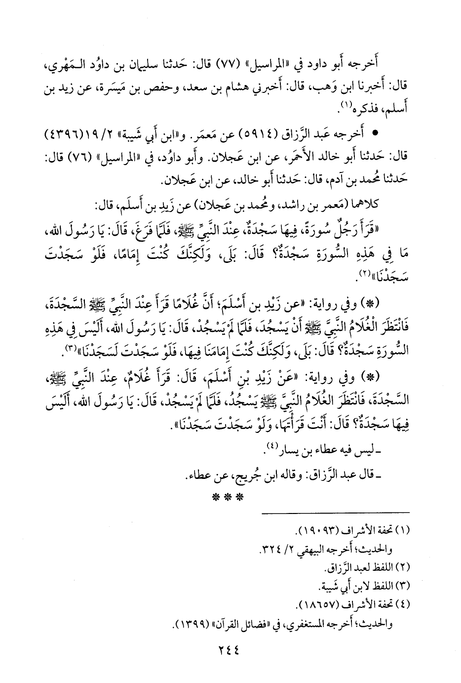أَخرجه أَبو داود في «المراسيل» (٧٧) قال: حدثنا سليمان بن داود المَهري، قال: أَخبرنا ابن وهب، قال: أَخبرني هشام بن سعد، وحفص بن مَيسرة، عن زيد بن أَسلم، عن عطاء بن يسار، قال: بلغني؛ أَن رسول الله صَلى الله عَليه وسَلم، فذكر نحوه (¬٢).
