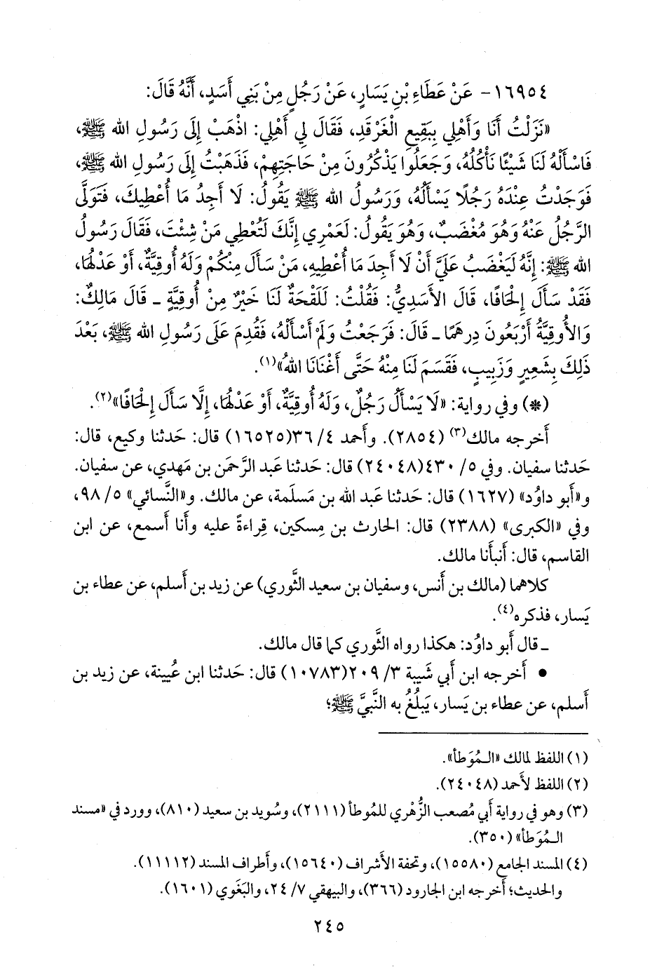 كلاهما (مالك بن أنس، وسفيان بن سعيد الثوري) عن زيد بن أسلم، عن عطاء بن يسار، فذكره (¬٤).