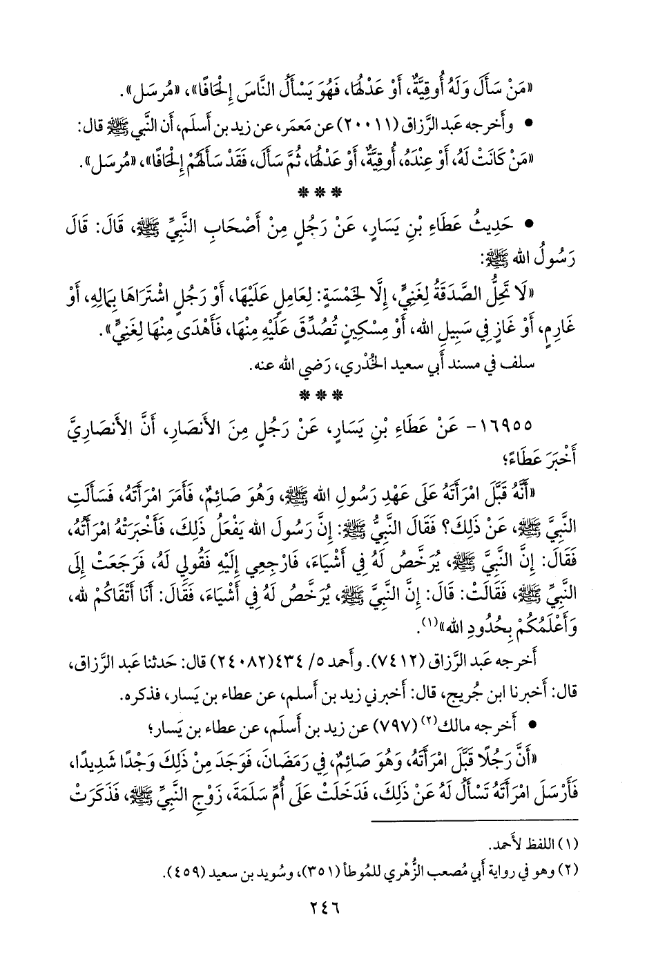 • أَخرجه مالك (¬٢) (٧٩٧) عن زيد بن أسلم، عن عطاء بن يسار؛