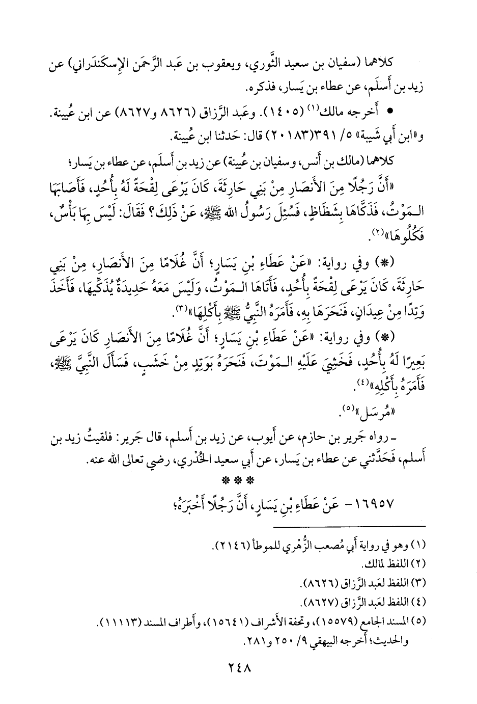 كلاهما (مالك بن أنس, وسفيان بن عُيينة) عن زيد بن أسلم, عن عطاء بن يسار؛