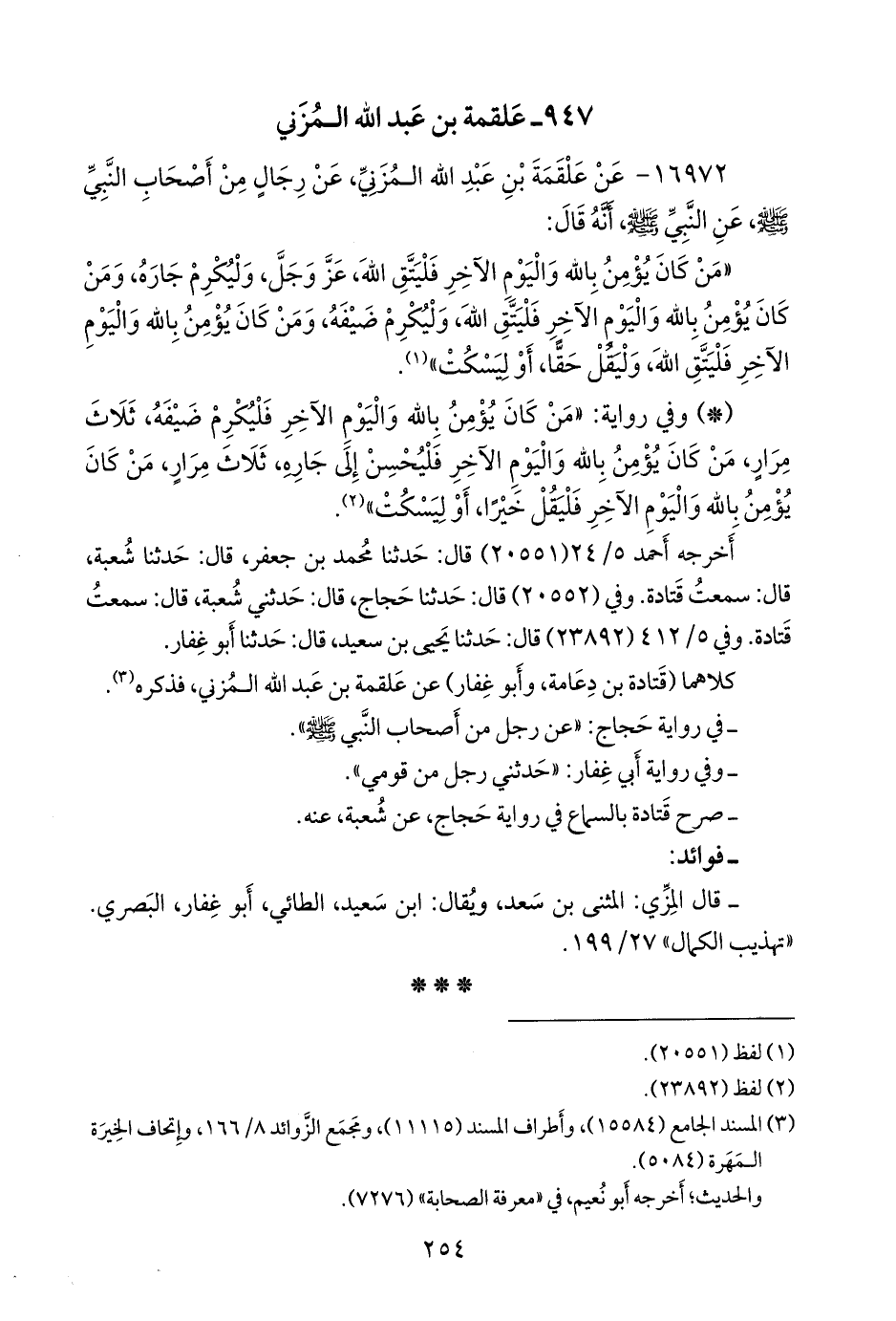 (¬٣) المسند الجامع (١٥٥٨٤)، وأطراف المسند (١١١١٥)، ومَجمَع الزوائد ٨/ ١٦٦، وإتحاف الخِيرَة المَهَرة (٥٠٨٤).