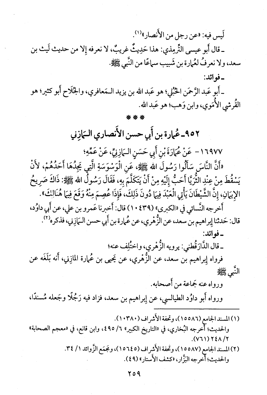 ٩٥٢ - عمارة بن أبي حسن الأَنصاري المازني