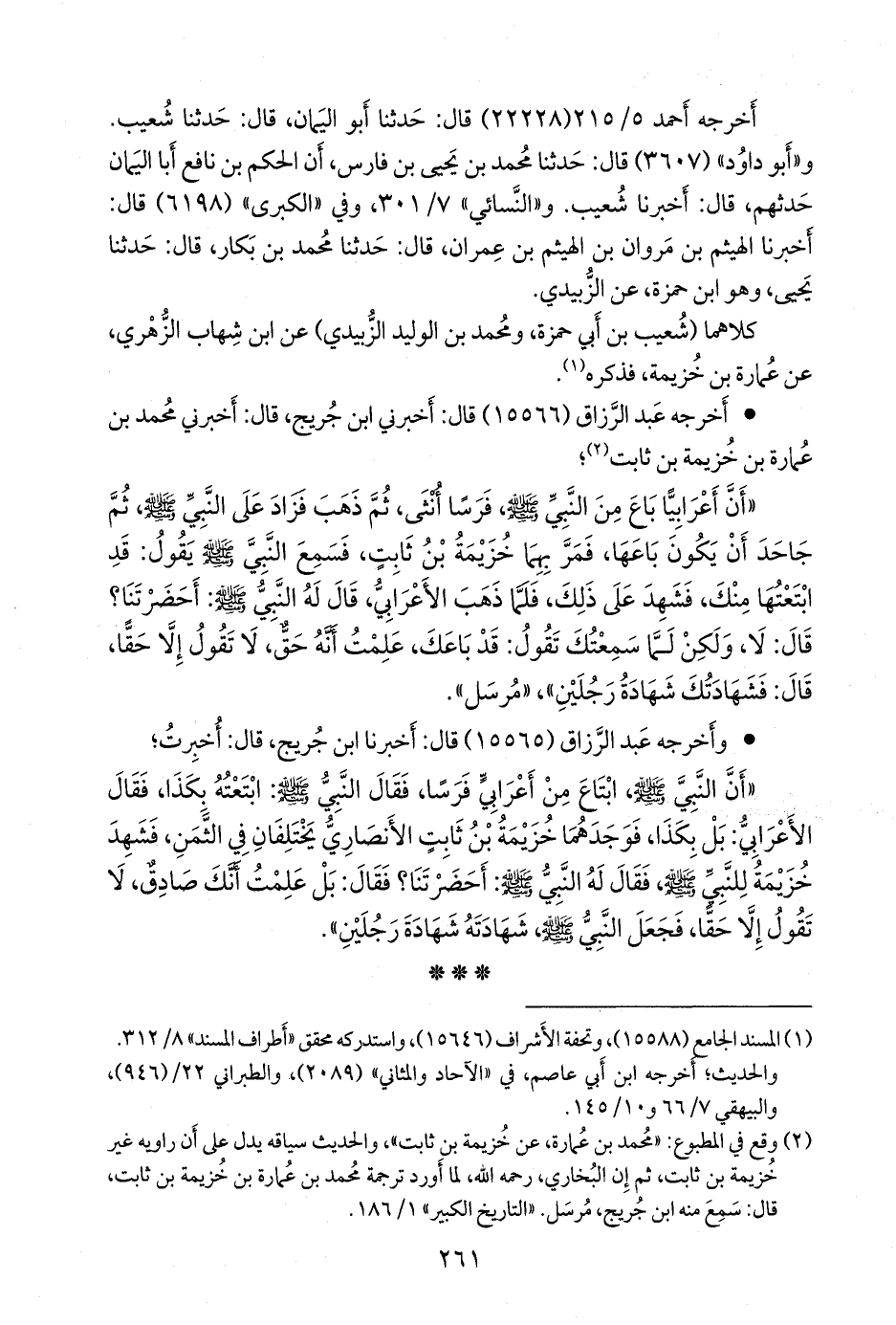 (¬٢) وقع في المطبوع: «محمد بن عمارة، عن خزيمة بن ثابت»، والحديث سياقه يدل على أن راويه غير خزيمة بن ثابت، ثم إن البخاري، رحمه الله، لما أورد ترجمة محمد بن عمارة بن خزيمة بن ثابت، قال: سمع منه ابن جُريج، مرسل. «التاريخ الكبير» ١/ ١٨٦.