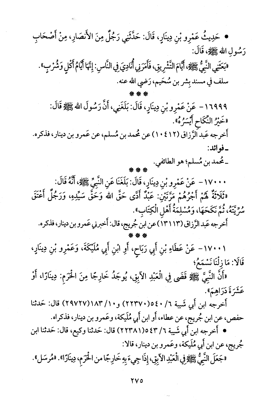 ١٦٩٩٩ - عن عَمرو بن دينار، قال: بلغني، أن رسول الله صَلى الله عَليه وسَلم قال: