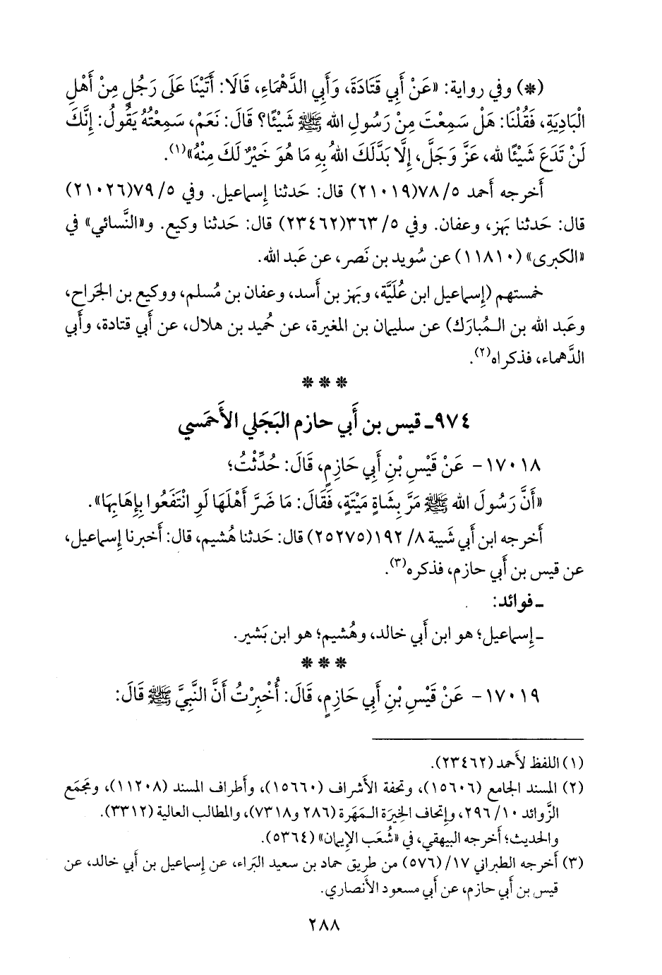 ١٧٠١٨ - عن قيس بن أبي حازم، قال: حدثت؛