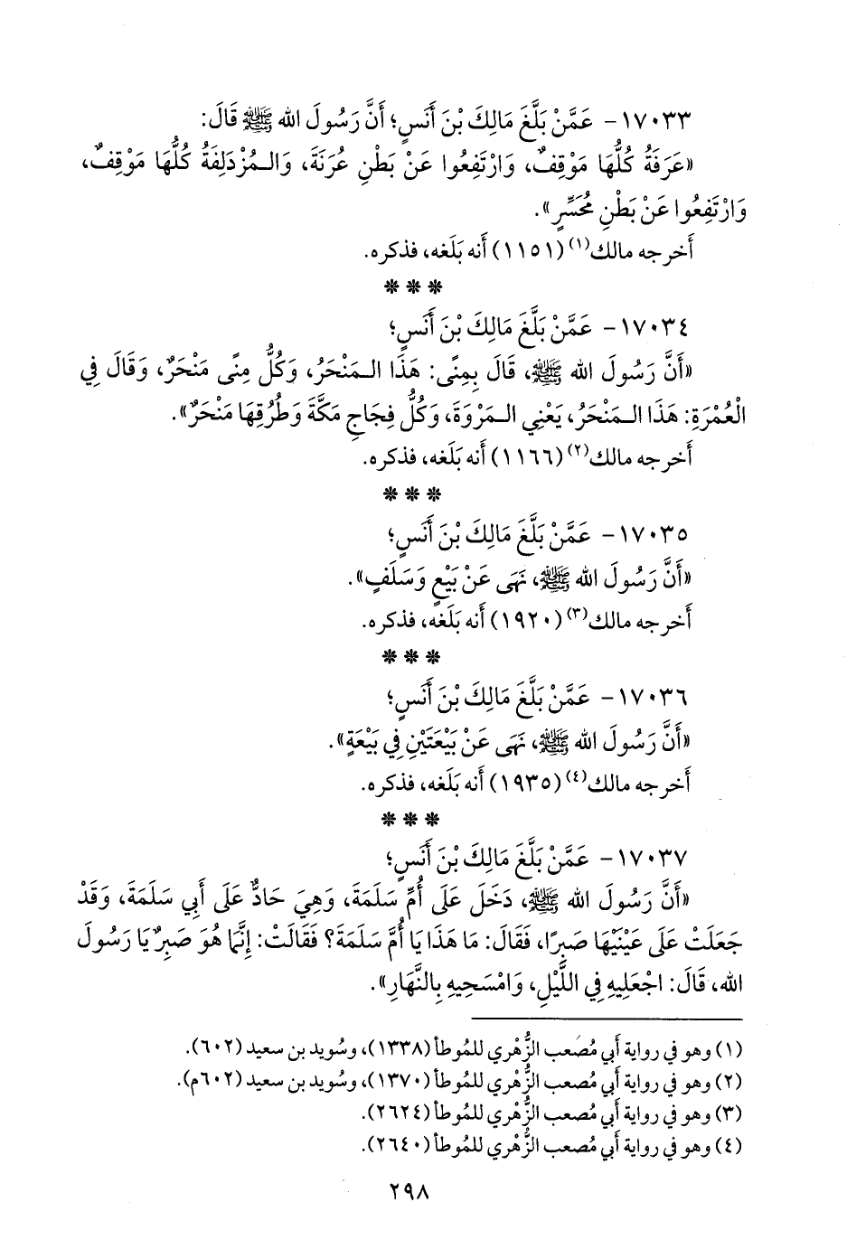 (¬١) وهو في رواية أبي مصعب الزُّهْري للموطأ (١٣٧٠)، وسويد بن سعيد (٦٠٢ م).