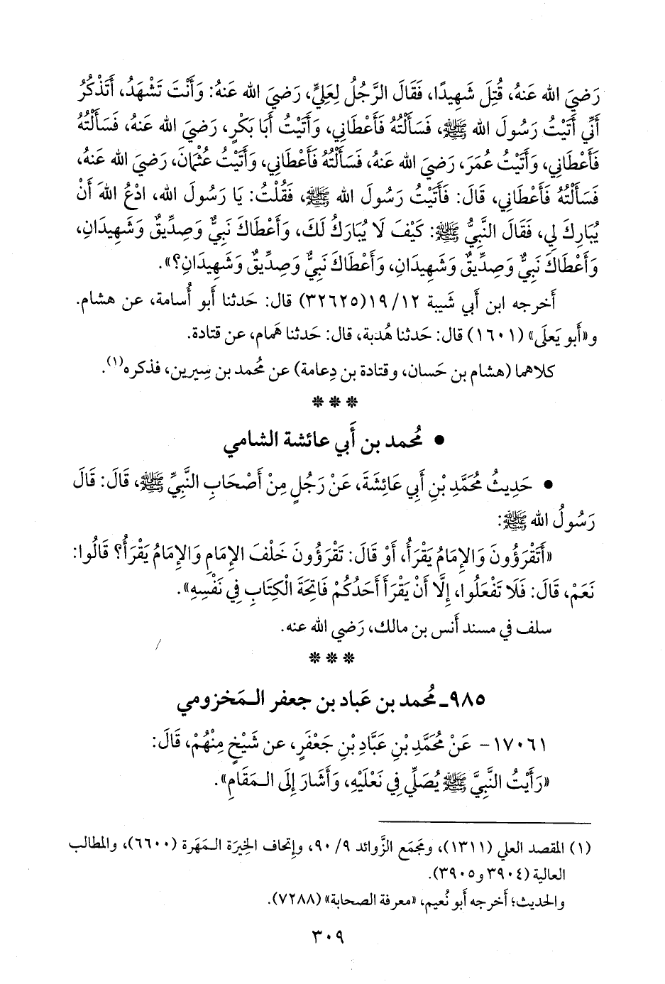 (¬١) المقصد العَلي (١٣١١)، ومَجمَع الزوائد ٩/ ٩٠، وإتحاف الخِيرَة المَهَرة (٦٦٠٠)، والمطالب العالية (٣٩٠٤ و ٣٩٠٥).