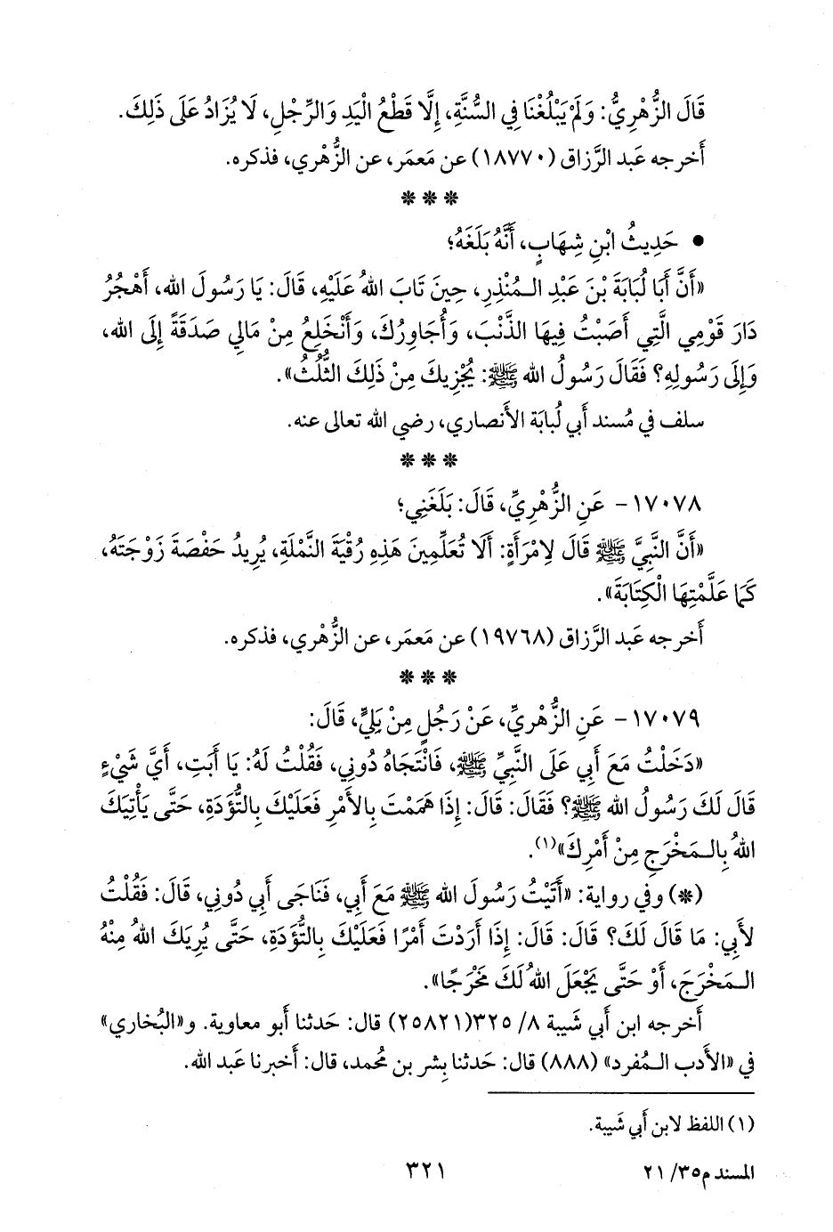 ١٧٠٧٨ - عن محمد بن مسلم بن شهاب الزُّهْري، قال: بلغني؛