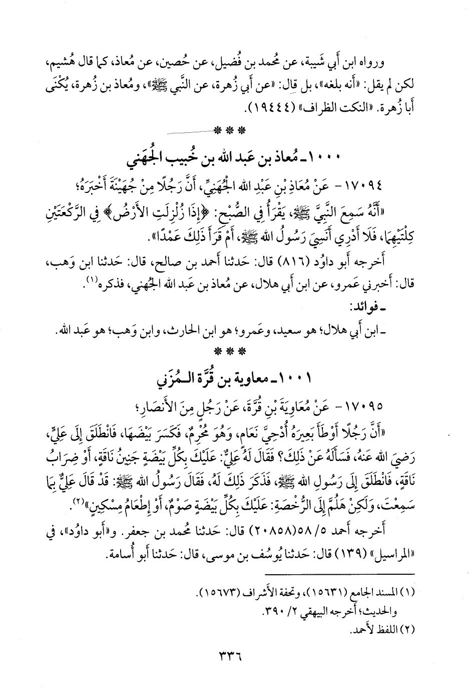 ١٠٠١ - معاوية بن قرة المزني
