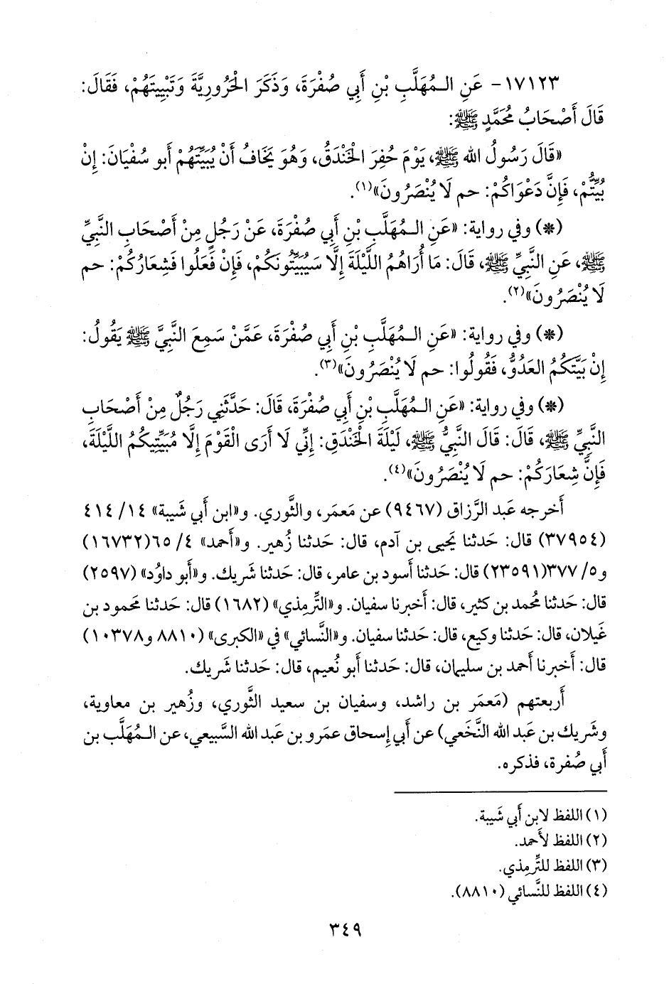 أربعتهم (مَعمَر بن راشد، وسفيان بن سعيد الثوري، وزهير بن معاوية، وشريك بن عبد الله النَّخَعي) عن أبي إسحاق عَمرو بن عبد الله السبيعي، عن المهلب بن أبي صفرة، فذكره.
