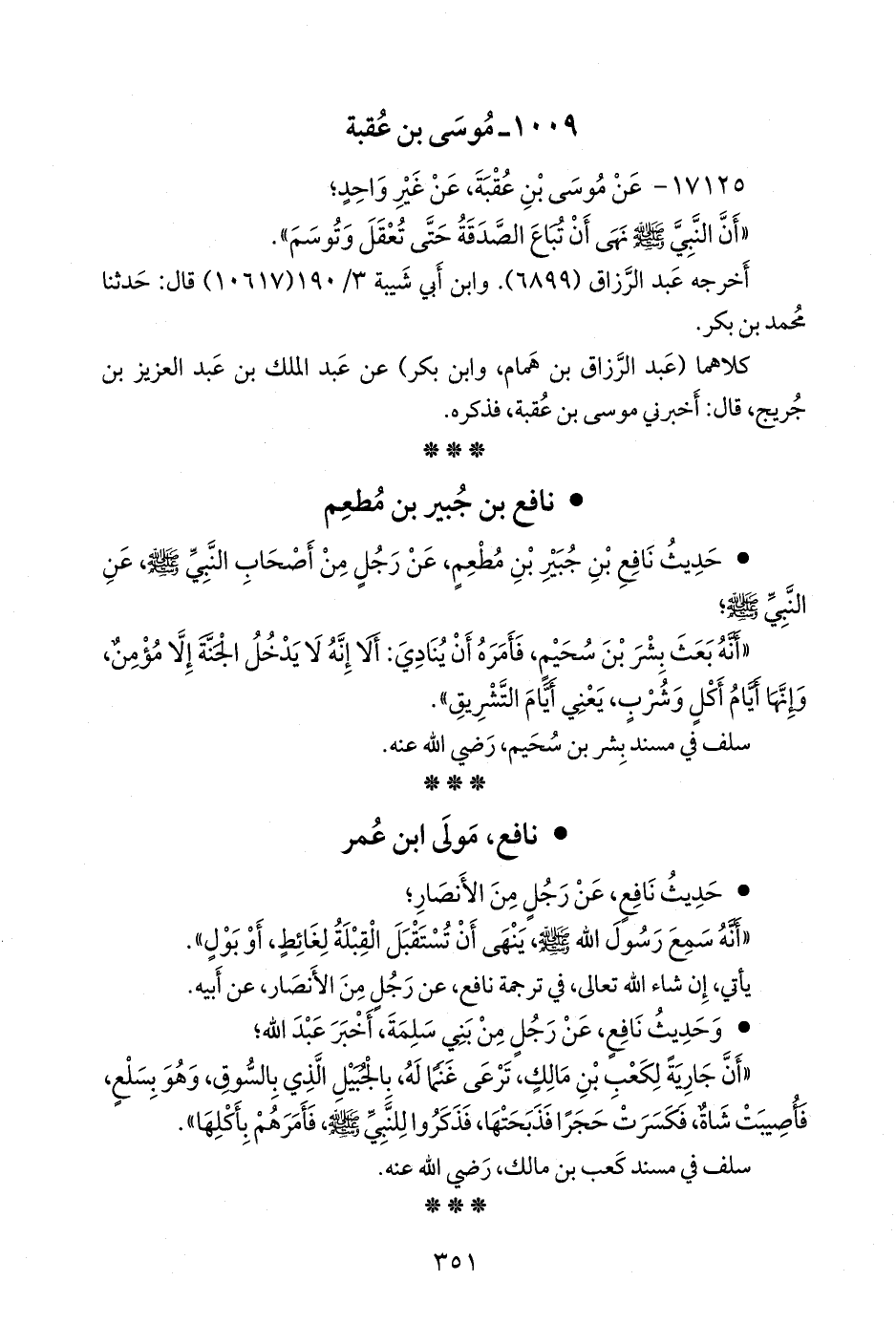 كلاهما (عبد الرزاق بن همام، وابن بكر) عن عبد الملك بن عبد العزيز بن جُريج، قال: أخبرني موسى بن عُقبة، فذكره.