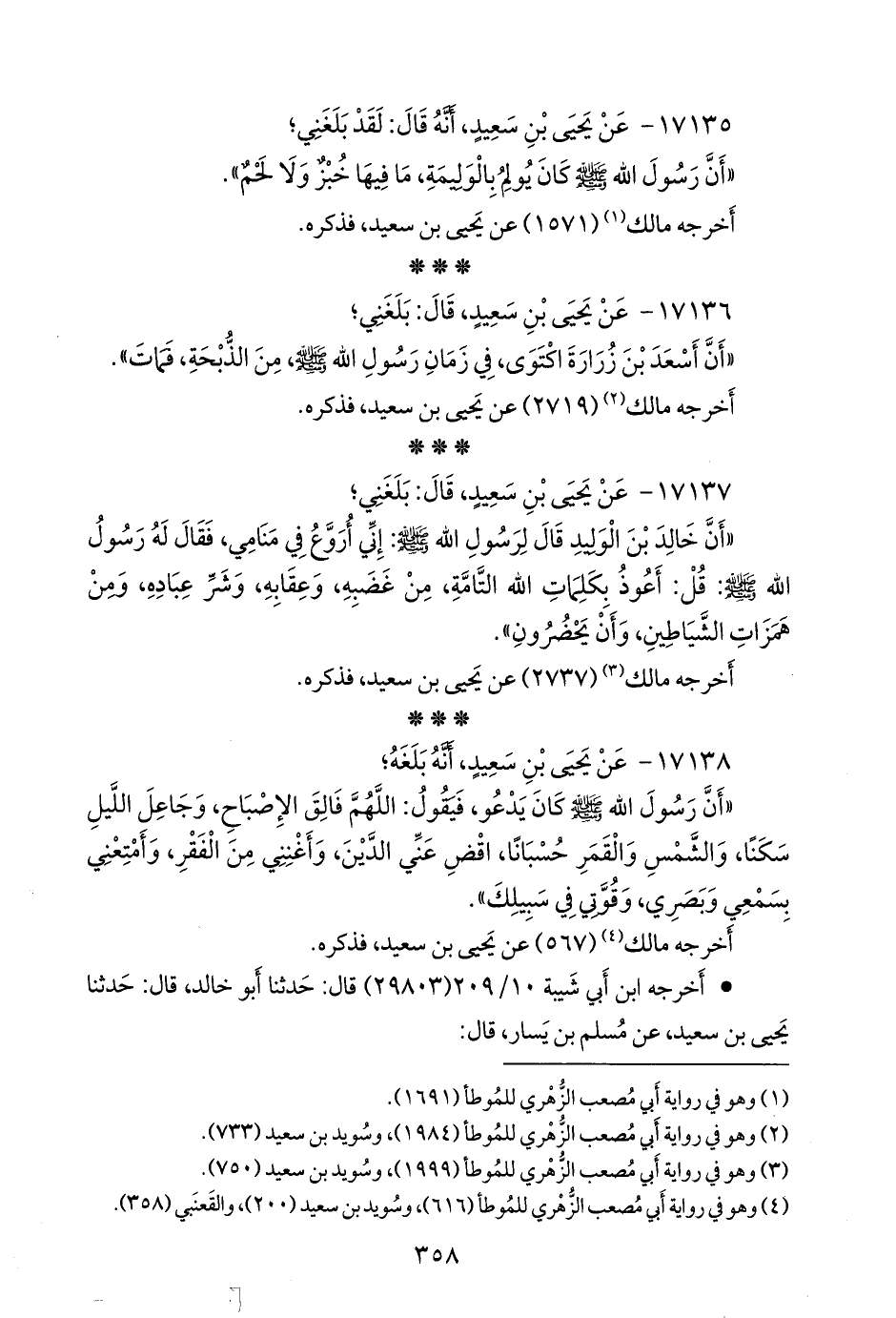 (¬١) وهو في رواية أبي مصعب الزُّهْري للموطأ (٦١٦)، وسويد بن سعيد (٢٠٠)، والقَعنَبي (٣٥٨).