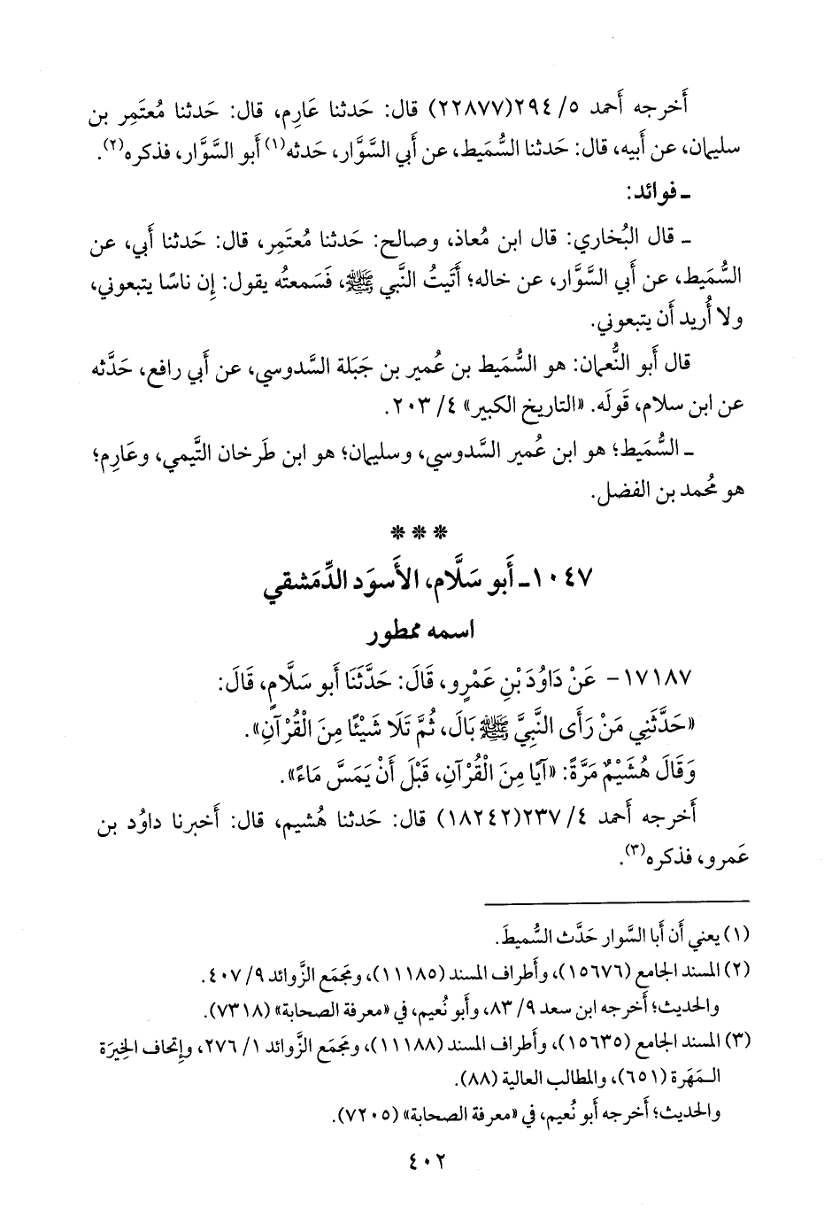 (¬١) المسند الجامع (١٥٦٣٥)، وأطراف المسند (١١١٨٨)، ومَجمَع الزوائد ١/ ٢٧٦، وإتحاف الخِيرَة المَهَرة (٦٥١)، والمطالب العالية (٨٨).