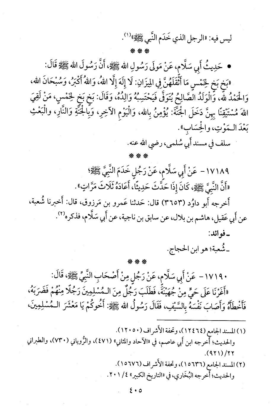 • حديث أبي سلام، عن مولى رسول الله صَلى الله عَليه وسَلم أن رسول الله صَلى الله عَليه وسَلم قال: