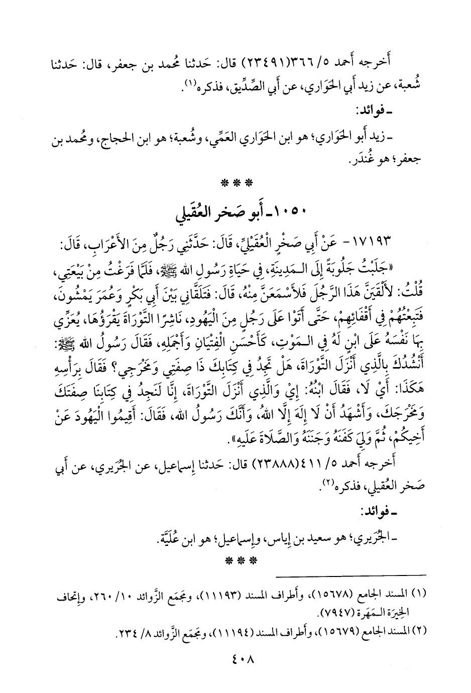 أخرجه أحمد (٢٣٨٨٨) قال: حدثنا إسماعيل، عن الجُريري، عن أبي صخر العُقيلي، فذكره (¬١).