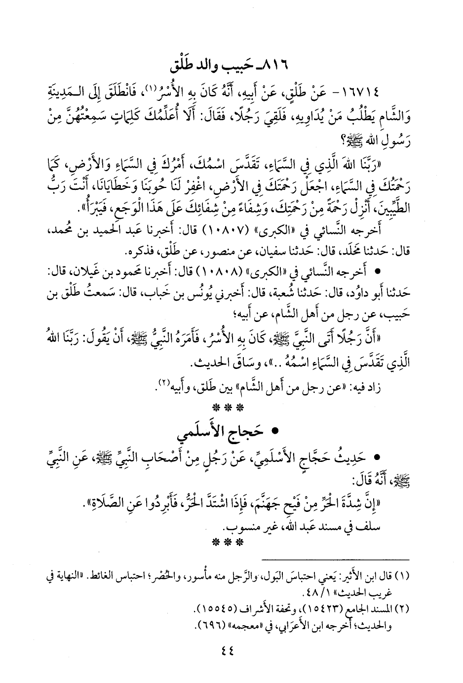 • حديث حجاج الأسلمي، عن رجل من أصحاب النبي صَلى الله عَليه وسَلم عن النبي صَلى الله عَليه وسَلم أنه قال: