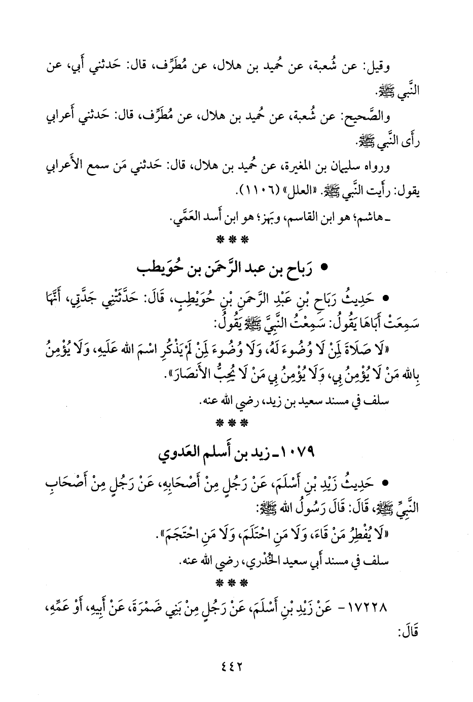 • حديث زيد بن أسلم، عن رجل من أصحابه، عن رجل من أصحاب النبي صَلى الله عَليه وسَلم قال: قال رسول الله صَلى الله عَليه وسَلم: