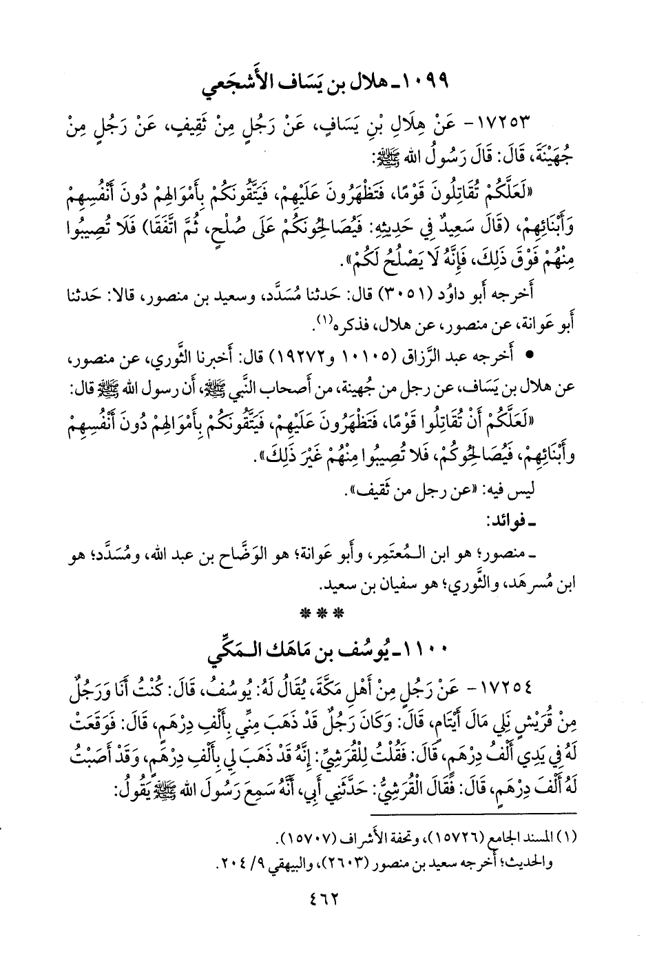 (¬٢) المسند الجامع (١٥٧٢٧)، وتحفة الأشراف (١٥٧٠٨)، وأطراف المسند (١١٢٣٩).