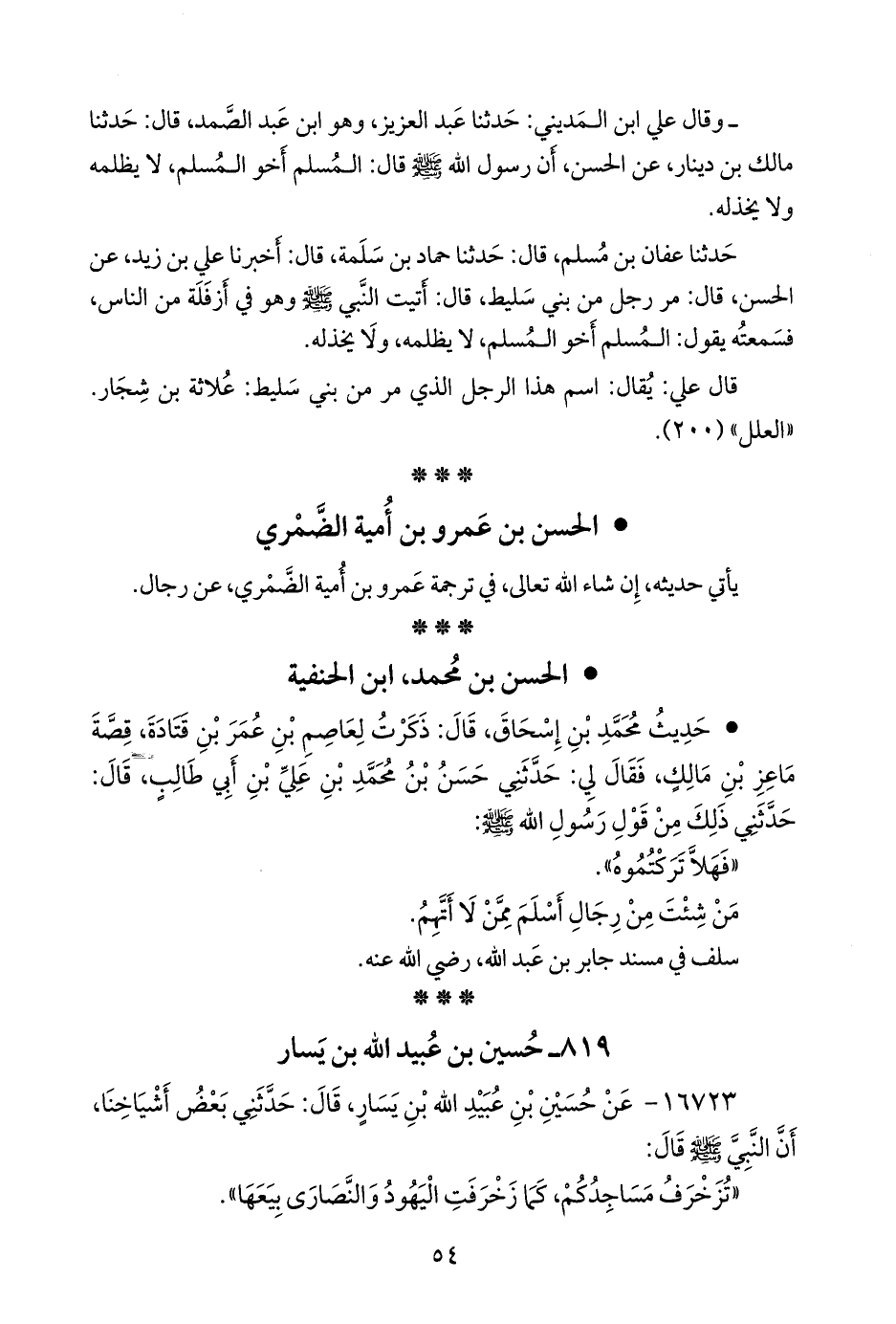 • حديث محمد بن إسحاق، قال: ذكرت لعاصم بن عمر بن قتادة، قصة ماعز بن مالك، فقال لي: حدثني حسن بن محمد بن علي بن أبي طالب، قال: حدثني ذلك من قول رسول الله صَلى الله عَليه وسَلم: