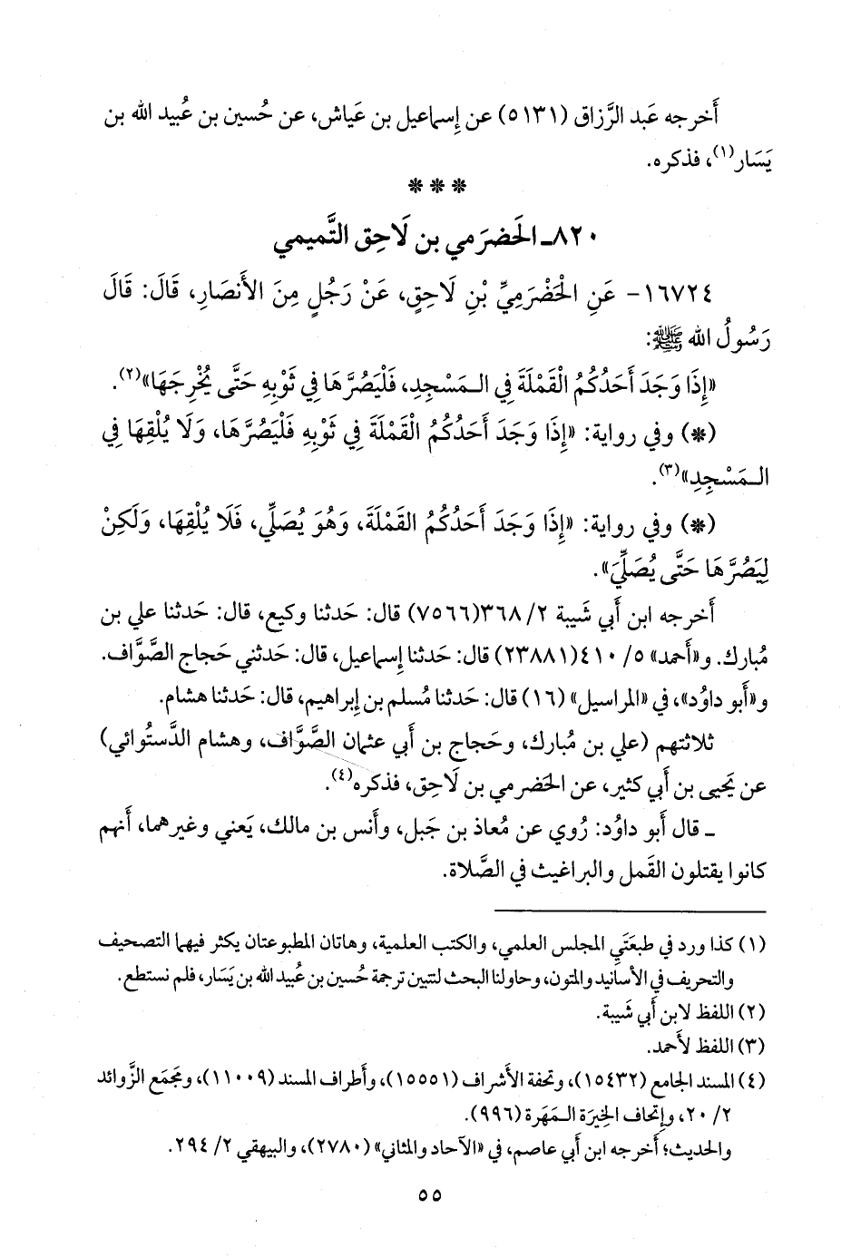 (¬٣) المسند الجامع (١٥٤٣٢)، وتحفة الأشراف (١٥٥٥١)، وأطراف المسند (١١٠٠٩)، ومَجمَع الزوائد ٢/ ٢٠، وإتحاف الخِيرَة المَهَرة (٩٩٦).