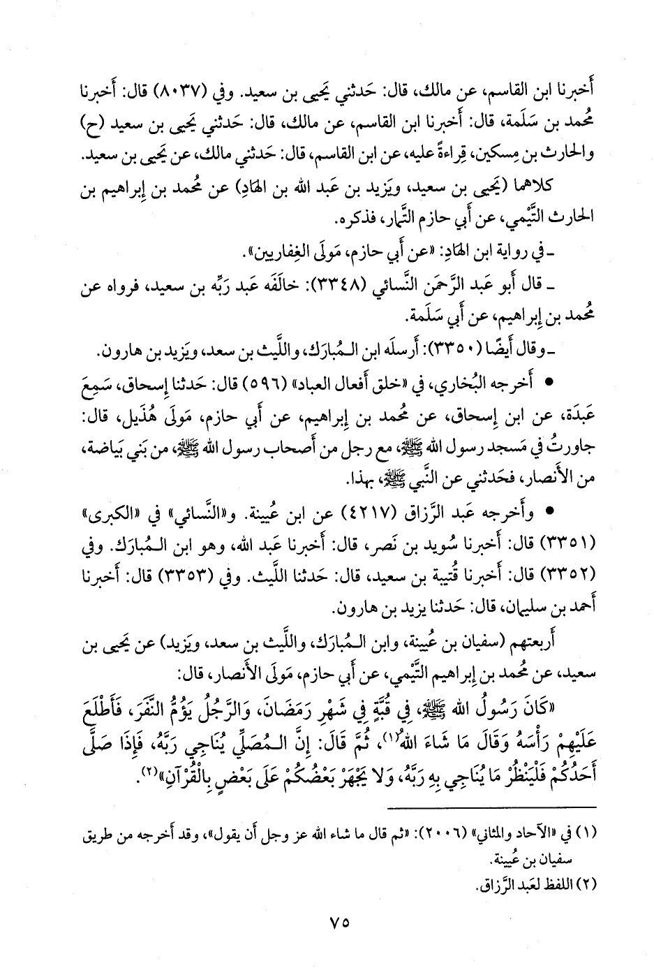 أربعتهم (سفيان بن عُيينة، وابن المبارك، والليث بن سعد، ويزيد) عن يحيى بن سعيد، عن محمد بن إبراهيم التيمي، عن أبي حازم مولى الأنصار، قال: