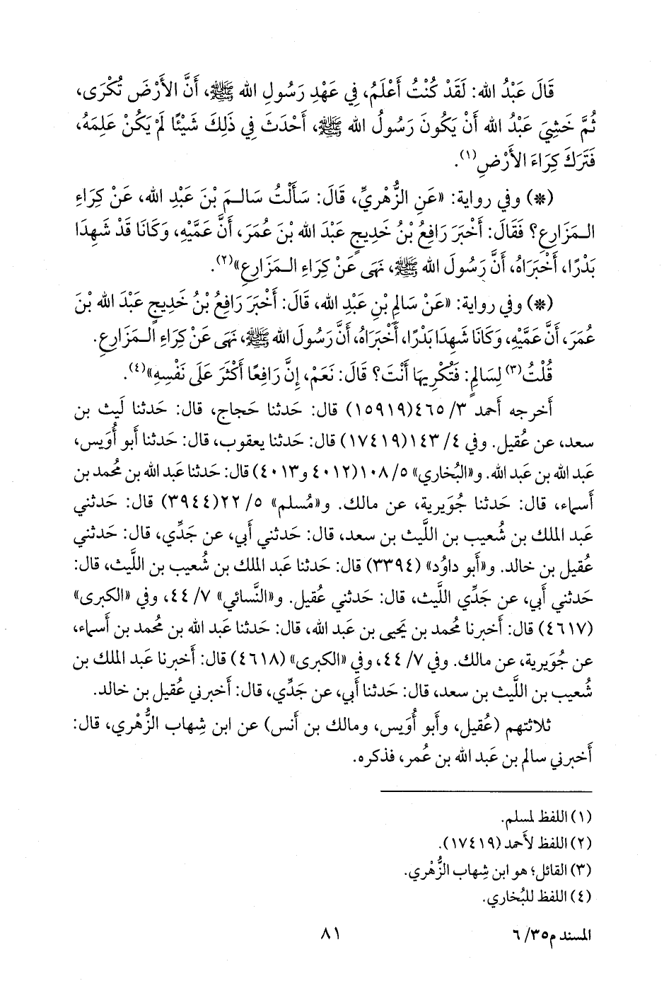 - قال أَبو داود: رواه أيوب، وعُبيد الله، وكثير بن فرقد، ومالك، عن نافع، عن رافع، عن النبي صَلى الله عَليه وسَلم.