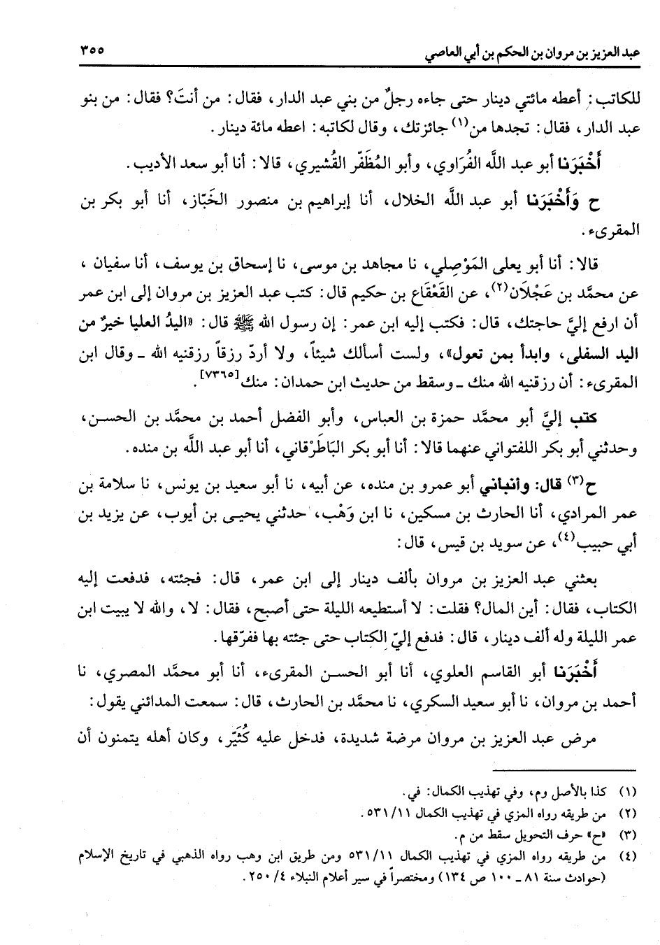 (4) من طريقه رواه المزي في تهذيب الكمال 11 / 531 ومن طريق ابن وهب رواه الذهبي في تاريخ الاسلام (حوادث سنة 81 - 100 ص 138) ومختصرا في سير أعلام النبلاء 4 / 250