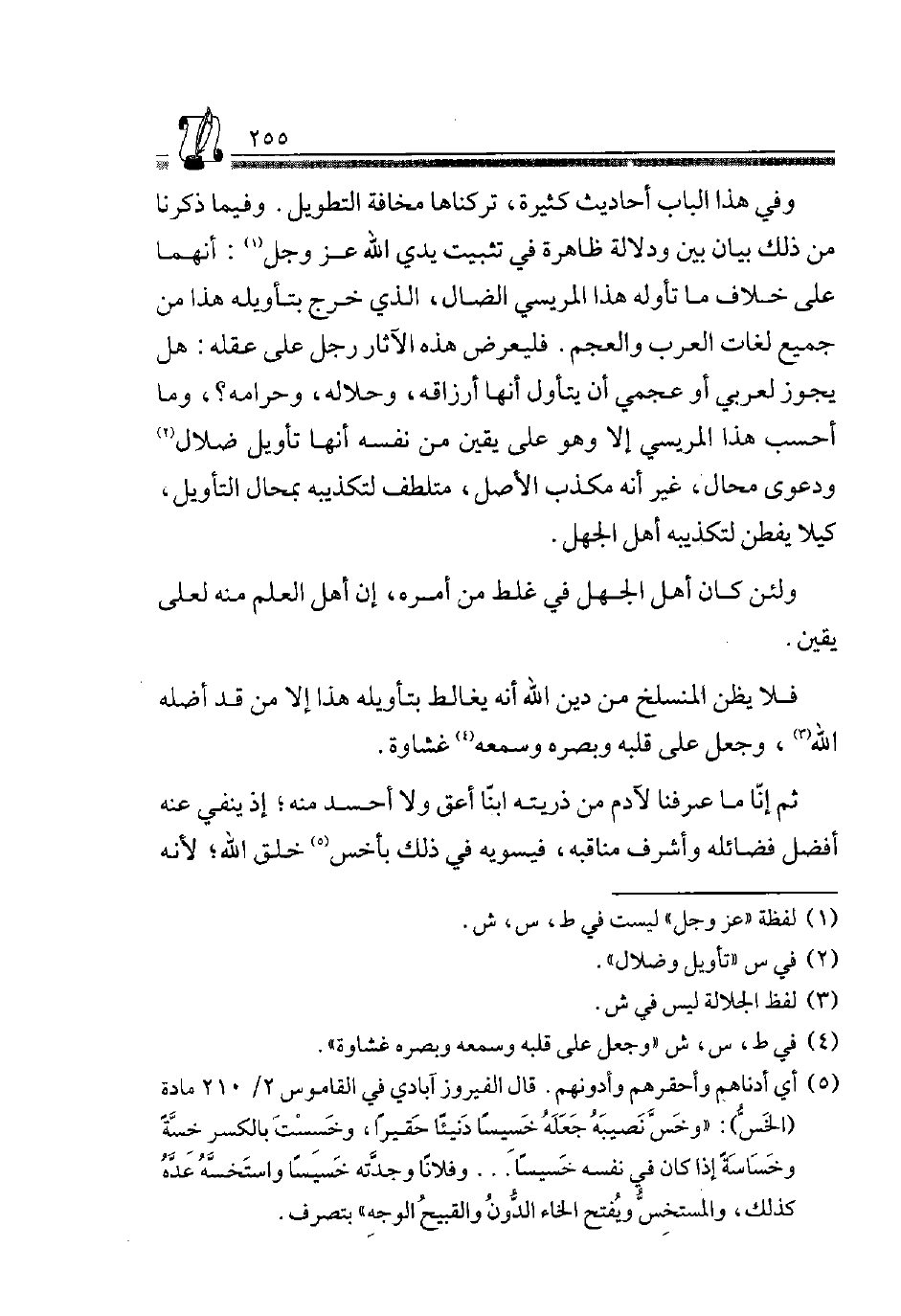 ثُمَّ إِنَّا من عَرَفْنَا لِآدَمَ مِنْ ذُرِّيَّتِهِ ابْنًا أَعَقَّ وَلَا أَحْسَدَ مِنْهُ، إِذْ يَنْفِي عَنْهُ أَفْضَلَ فَضَائِلِهِ وَأَشْرَفَ مَنَاقِبِهِ، فَيُسَوِّيهِ فِي ذَلِكَ بِأَخَسِّ5 خلق الله؛ لِأَنَّهُ