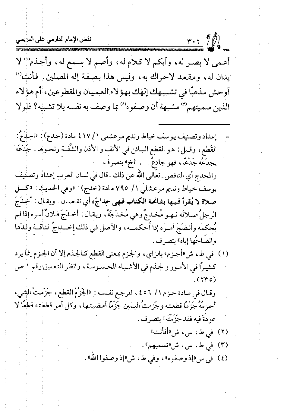1 فِي ط، ش "أَجْزم" بالزاي، والجزم بِمَعْنى الْقطع كالجذم إِلَّا أَن الْجَزْم إِنَّمَا يرد كثيرا فِي الْأُمُور والجذم فِي الْأَشْيَاء المحسوسة، وَانْظُر التَّعْلِيق رقم1 ص"235".