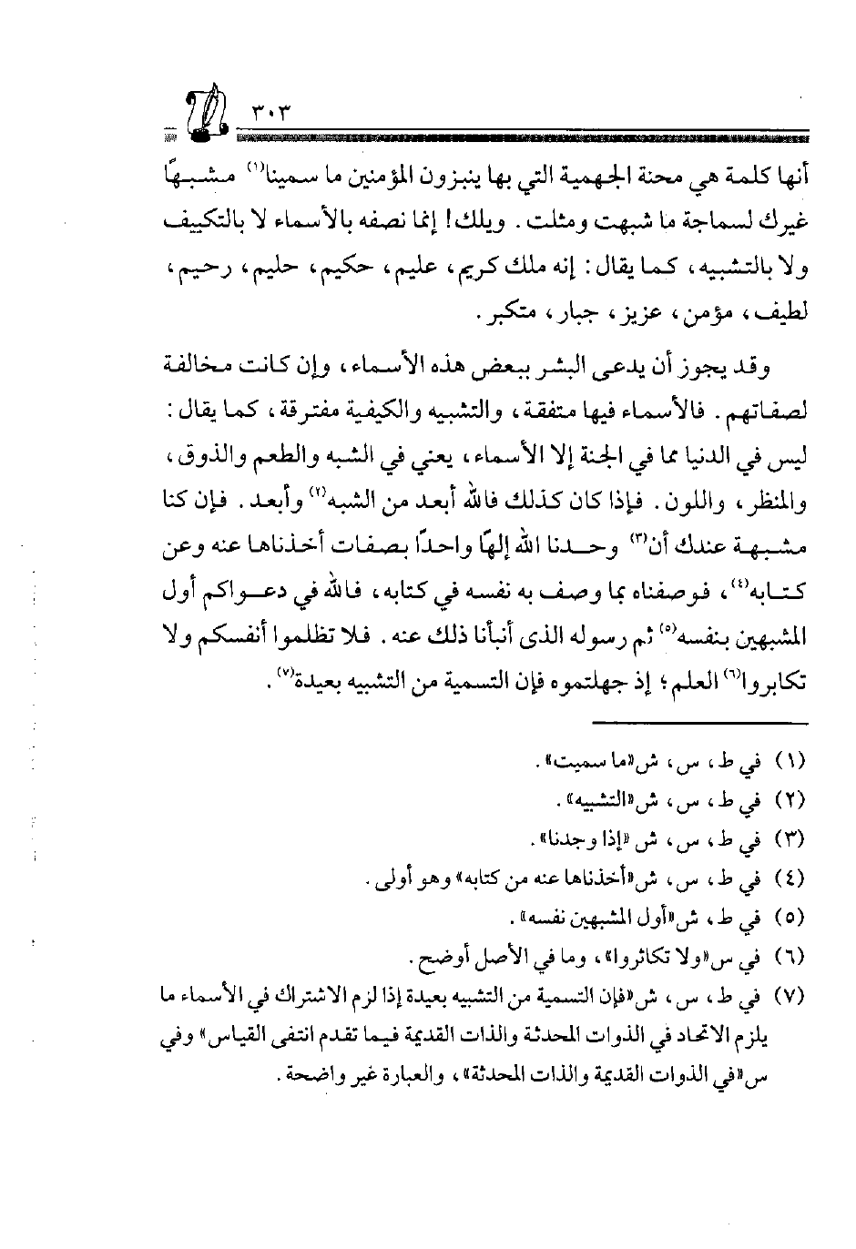 7 فِي ط، س، ش "فَإِنَّ التَّسْمِيَةَ مِنَ التَّشْبِيهِ بَعِيدَةٌ إِذا لزم الِاشْتِرَاك فِي الْأَسْمَاء مَا يلْزم الِاتِّحَاد فِي الذوات المحدثة والذات الْقَدِيمَة فِيمَا تقدم انْتَفَى الْقيَاس" وَفِي س "فِي الذوات الْقَدِيمَة والذات المحدثة" والعبارة غير وَاضِحَة.