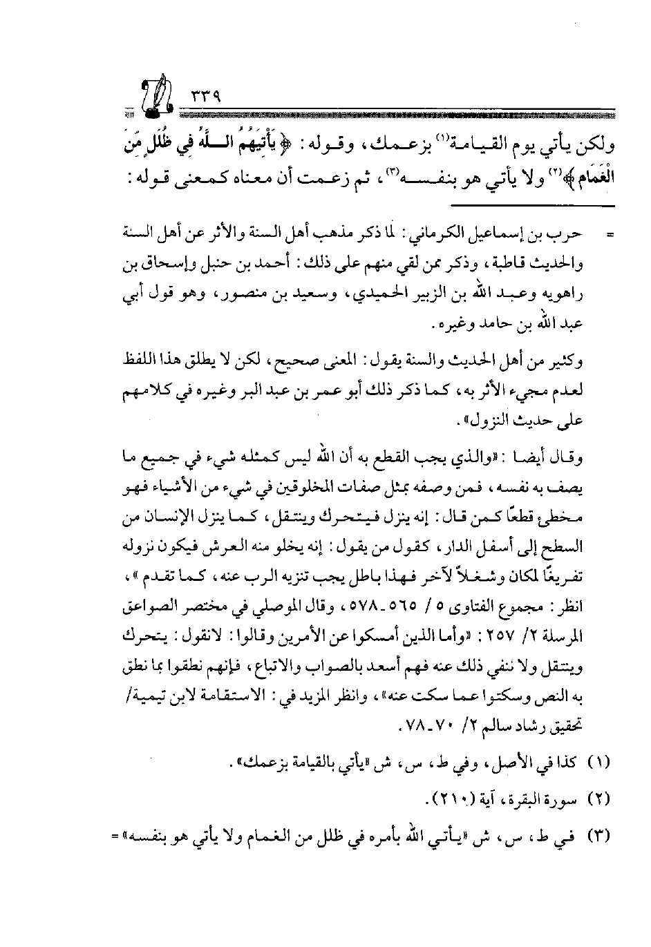 3 فِي ط، س، ش "يَأْتِي الله بأَمْره فِي ظلل من الْغَمَام وَلَا يَأْتِي هُوَ بِنَفسِهِ" ولعلها سَقَطت من الأَصْل.