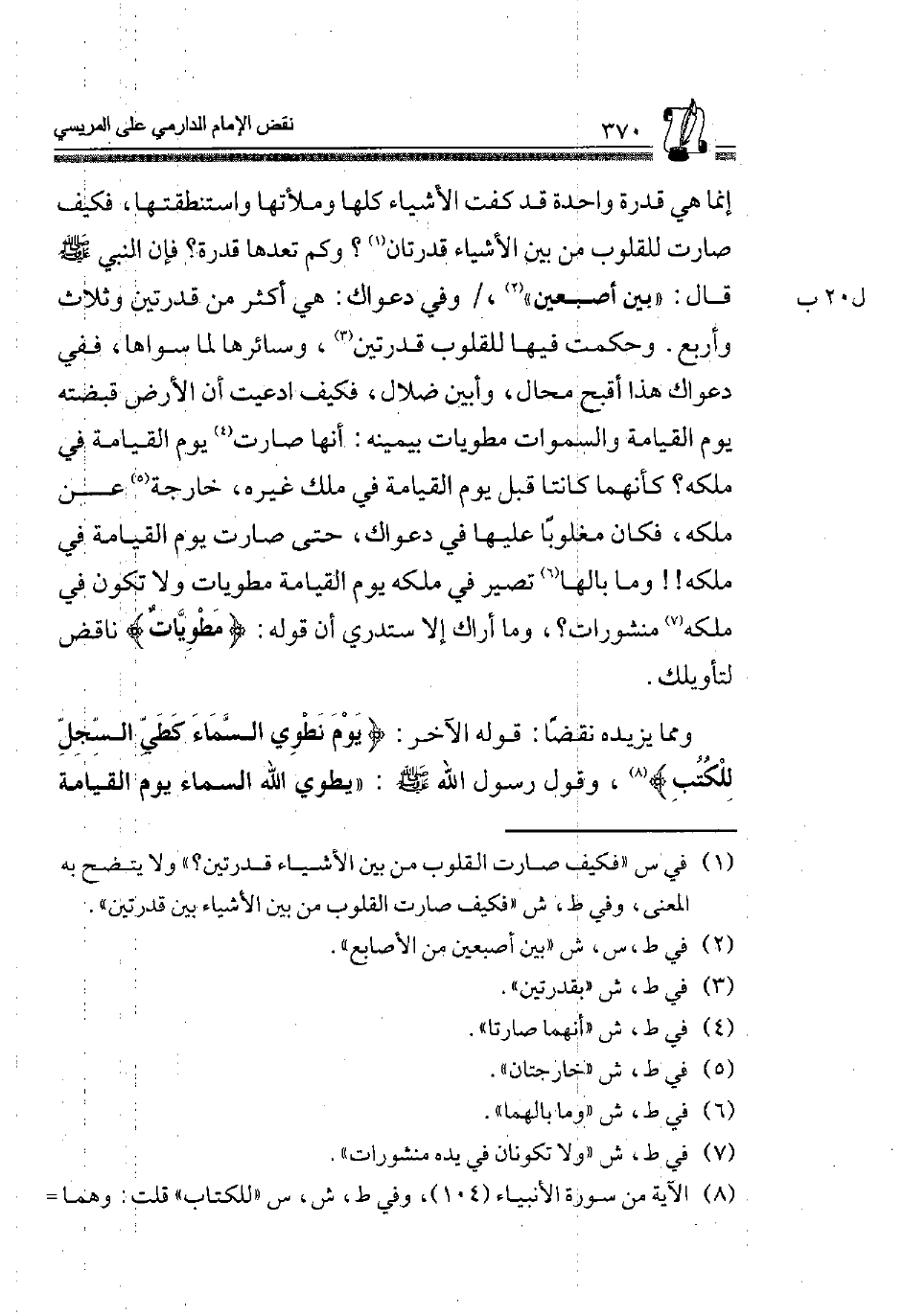 1 فِي س "فَكيف صَارَت الْقُلُوب من بَين الْأَشْيَاء قدرتين؟ " وَلَا تتضح بِهِ الْمَعْنى، وَفِي ط، ش "فَكيف صَارَت الْقُلُوب من بَين الْأَشْيَاء بَين قدرتين".