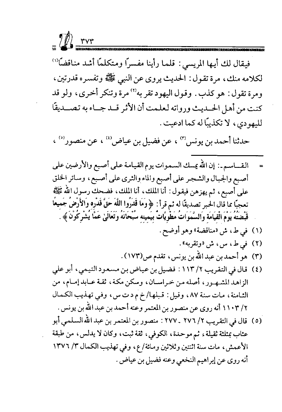 حَدَّثَنَا أَحْمَدُ بْنُ يُونُسَ3، عَنْ فُضَيْلِ بْنِ عِيَاضٍ4، عَنْ مَنْصُور5،