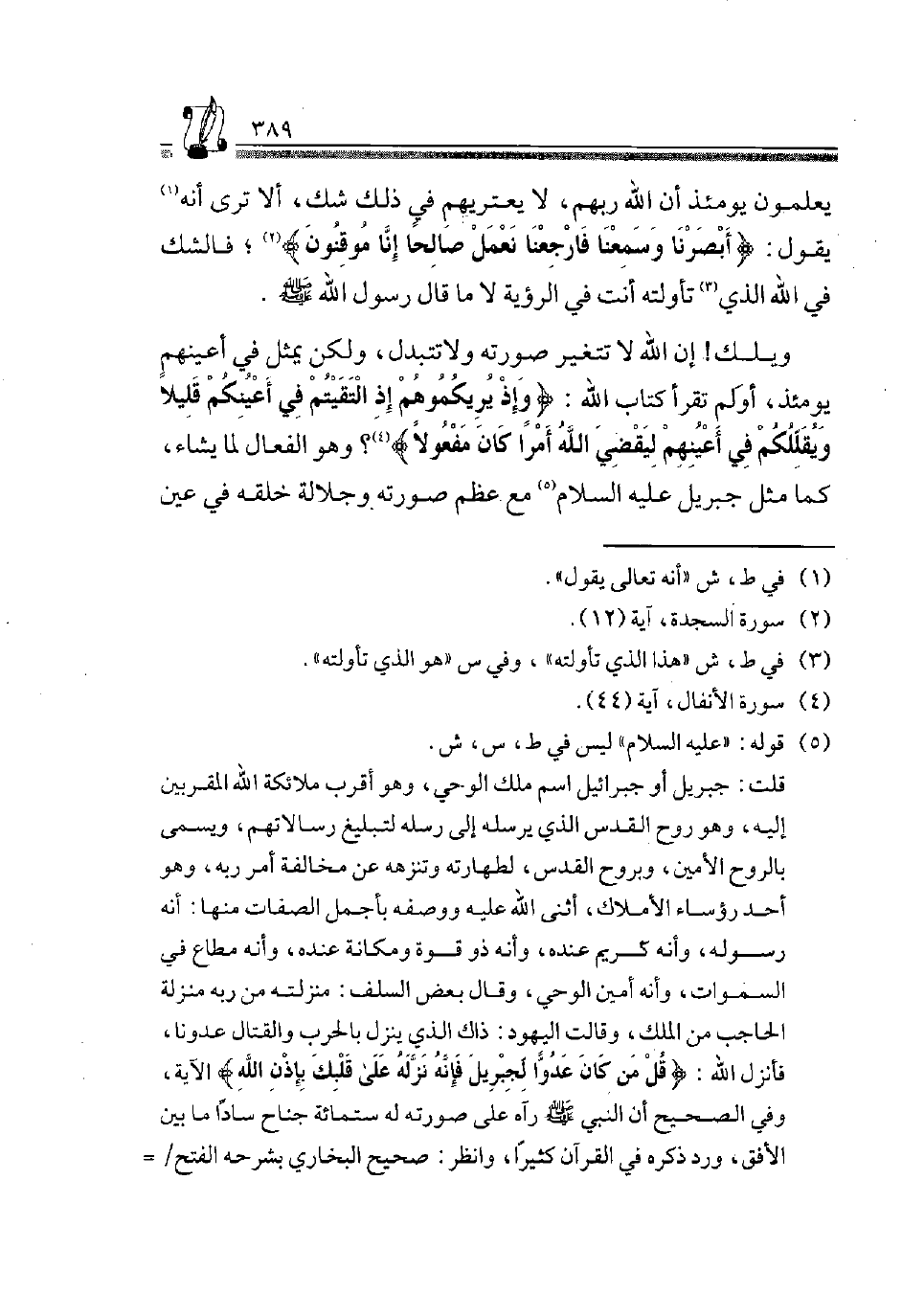 وَيْلَكَ! إِنَّ اللَّهَ لَا تَتَغَيَّرُ صُورَتُهُ وَلَا تَتَبَدَّلُ، وَلَكِنْ يُمَثَّلُ فِي أَعْيُنِهِمْ يَوْمَئِذٍ، أَوَلَمْ تَقْرَأْ كِتَابَ اللَّهِ: {وَإِذْ يُرِيكُمُوهُمْ إِذِ الْتَقَيْتُمْ فِي أَعْيُنِكُمْ قَلِيلاً وَيُقَلِّلُكُمْ فِي أَعْيُنِهِمْ لِيَقْضِيَ اللَّهُ أَمْراً كَانَ مَفْعُولاً} 4؟ وَهُوَ الْفَعَّالُ لِمَا يَشَاءُ، كَمَا مُثِّلَ جِبْرِيلُ عَلَيْهِ السَّلَامُ5 مَعَ مُعظم صُورَتِهِ وَجَلَالَةِ خَلْقِهِ فِي عَيْنِ