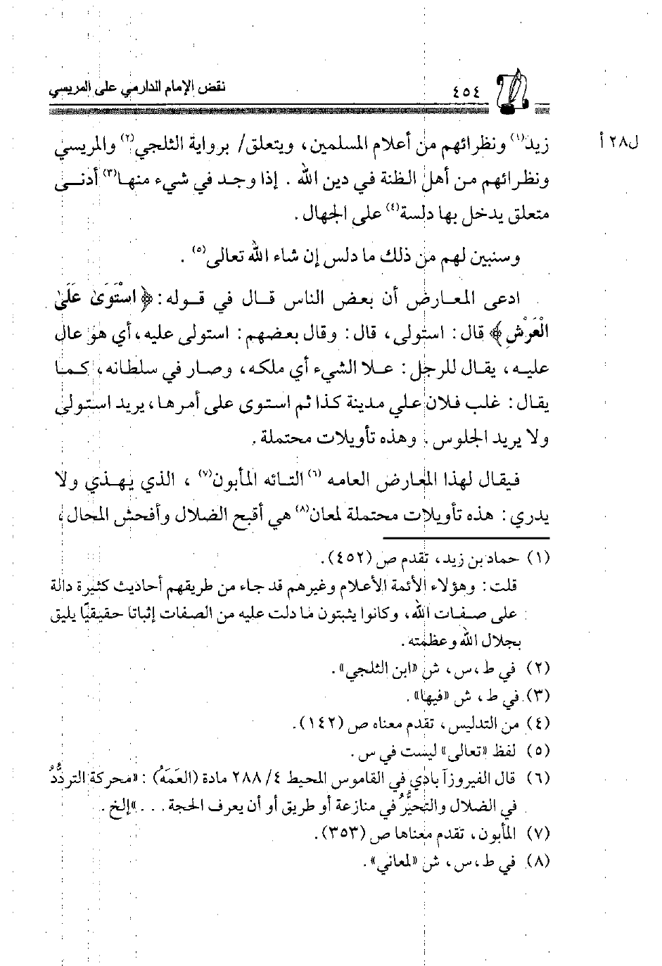 زَيْدٍ1 وَنُظَرَائِهِمْ مِنْ أَعْلَامِ الْمُسْلِمِينَ، وَيَتَعَلَّقُ، بِرِوَايَةِ الثَّلْجِيِّ2 وَالْمَرِيسِيِّ وَنُظَرَائِهِمْ مِنْ أَهْلِ الظَّنَّةِ فِي دِينِ اللَّهِ. إِذَا وَجَدَ فِي شَيْءٍ مِنْهَا3 أَدْنَى مُتَعَلِّقٍ يَدْخُلُ بِهَا دِلْسَةً4 عَلَى الْجُهَّالِ.