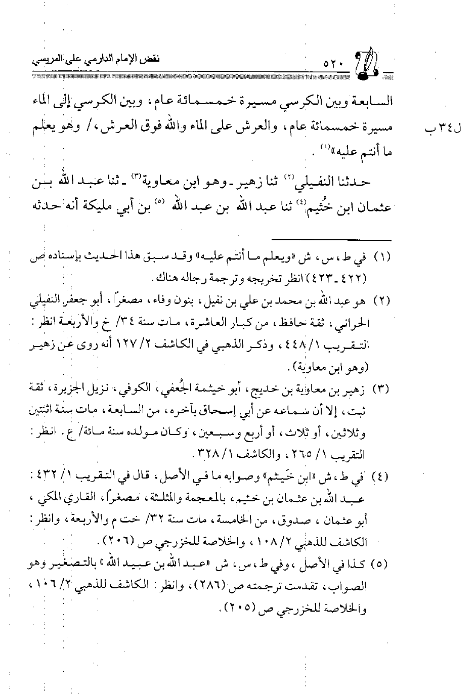 2 هُوَ عبد الله بن مُحَمَّد، بن عَليّ بن نفَيْل، بنُون وَفَاء، مُصَغرًا، أَبُو جَعْفَر النُّفَيْلِي الْحَرَّانِي، ثِقَة حَافظ، من كبار الْعَاشِرَة، مَاتَ سنة 34/ خَ وَالْأَرْبَعَة انْظُر: الْحَرَّانِي، ثِقَة حَافظ، من كبار الْعَاشِرَة، مَاتَ سنة 34/ خَ والأبعة انْظُر: التَّقْرِيب 1/ 448، وَذكر الذَّهَبِيّ فِي الكاشف 2/ 127 أَنه روى عَن زُهَيْر "وَهُوَ ابْن مُعَاوِيَة".