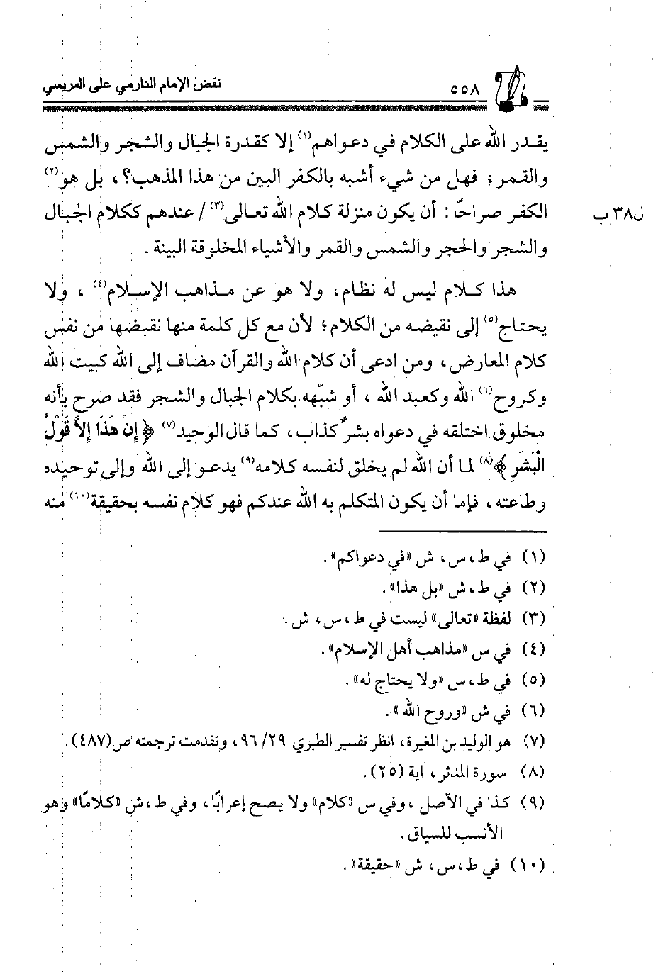 9 كَذَا فِي الأَصْل، وَفِي س "كَلَام" وَلَا يَصح إعرابًا، وَفِي ط، ش "كلَاما" وَهُوَ الْأَنْسَب للسياق.