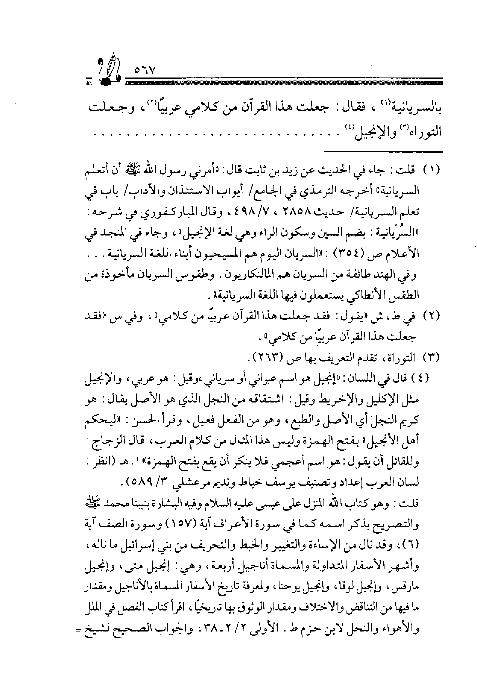 1 قلت: جَاءَ فِي الحَدِيث عَن زيد بن ثَابت قَالَ: "أَمرنِي رَسُولِ اللَّهِ صَلَّى اللَّهُ عَلَيْهِ وَسلم أَن أتعلم السريانية" أخرجه التِّرْمِذِيّ فِي الْجَامِع، أَبْوَاب الاسْتِئْذَان والآداب، بَاب فِي تعلم السريانية، حَدِيث 2858، 7/ 498، وَقَالَ المباركفوري فِي شَرحه: "السريانية: بِضَم السِّين وَسُكُون الرَّاء وَهِي لُغَة الْإِنْجِيل"، وَجَاء فِي المنجد فِي الْأَعْلَام ص"354": السريان الْيَوْم هم المسيحيون أَبنَاء اللُّغَة السريانية".....