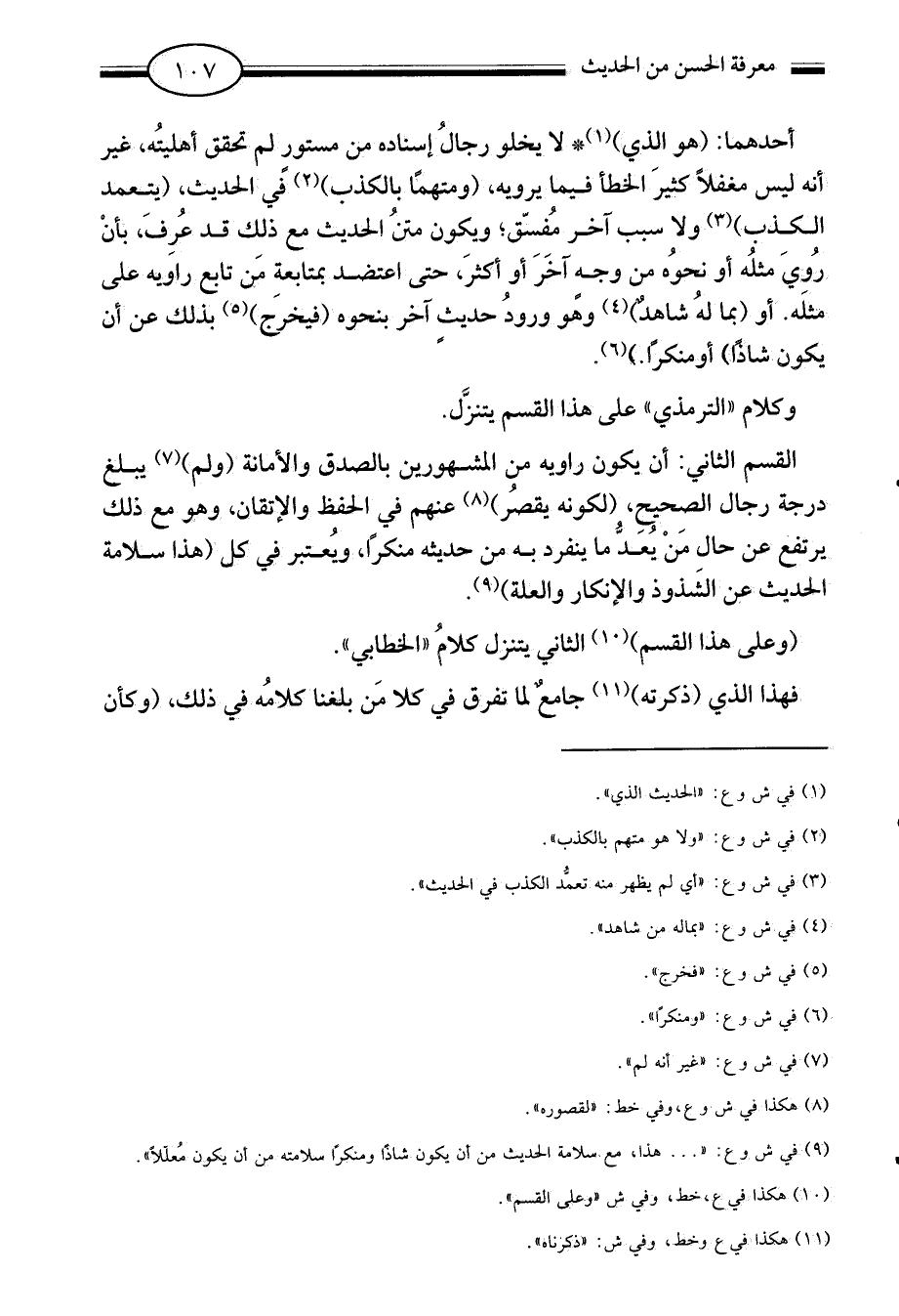 القسم الثاني: ان يكون راويه من المشهورين بالصدق والأمانة ولم7 يبلغ درجة رجال الصحيح لكونه يقصر8 عنهم في الحفظ والإتقان وهو مع ذلك برتفع عن حال من يعد ما ينفرد به من حديثه منكرا ويعتبر في كل هذا سلامة الحديث عن الشذوذ والإنكار والعلة9.