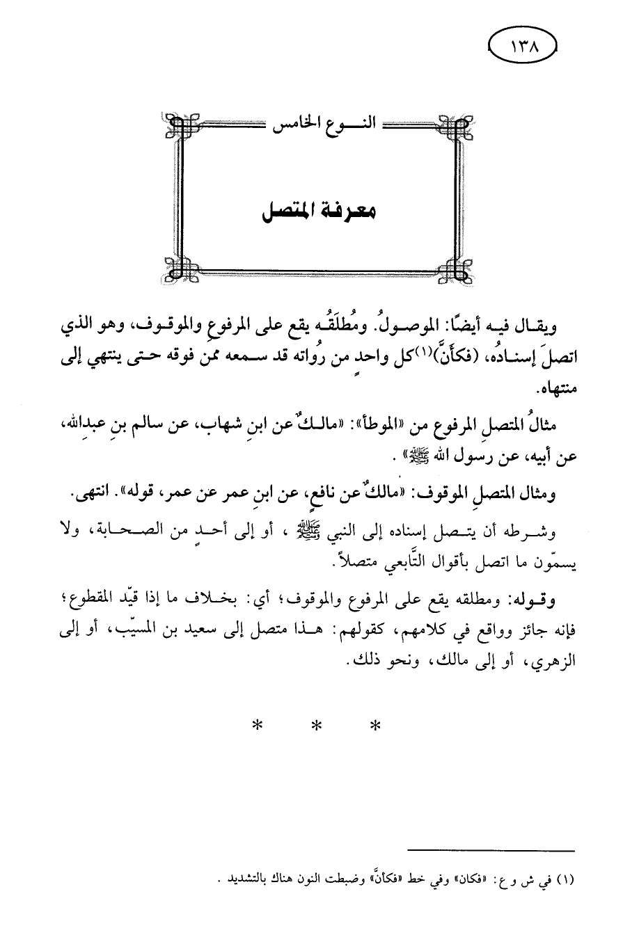 ومثال المتصل الموقوف مالك عن نافع عن ابن عمر عن عمر قوله انتهى.