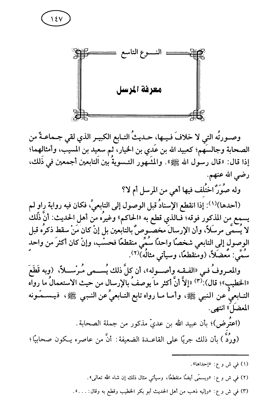 2 في ش وع: "ويسمي أيضا منقطعا وسيأتي مثال ذلك إن شاء الله تعالي".