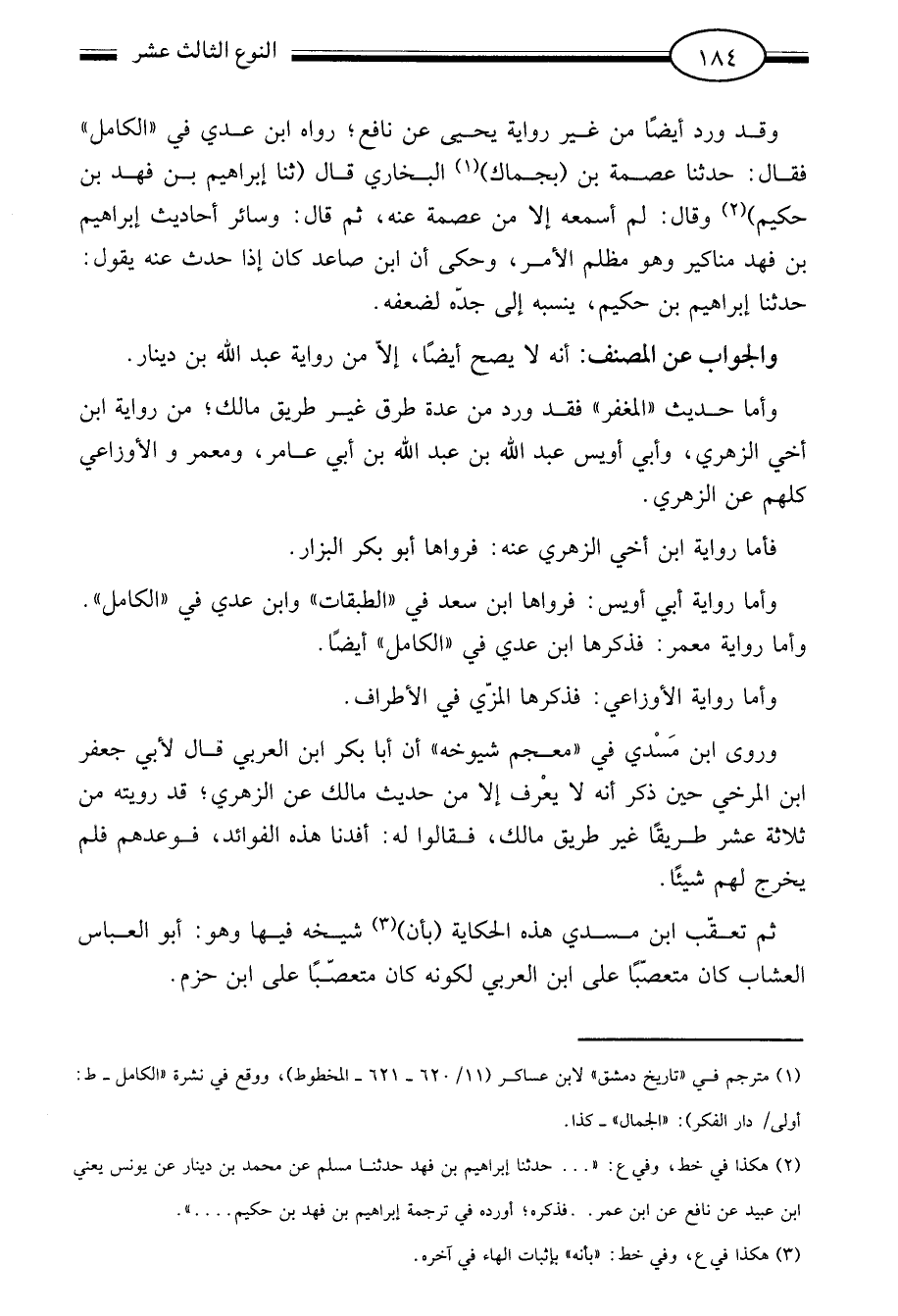 2 هكذا في خط وفي ع: " ... حدثنا إبراهيم بن فهد حدثنا مسلم عن محمد بن دينار عن يونس يعني ابن عبيد عن نافع عن عم..فذكره؛ أورده في ترجمة إبراهيم بن