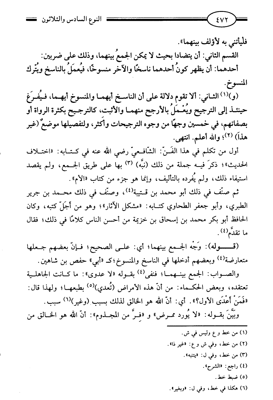 "و"1الثاني: ألا تقوم دلالة على أن الناسخ أيهما والمنسوخ أيهما فيفرغ حينئذ في الترجيح ويعمل بالأرجح منهما والأثبت كالترجيح بكثرة الرواة أو بصفاتهم في خمسين وجها من وجوه الترجيحات وأكثر ولتفصيلها موضع "غير هذا"2 والله أعلم انتهى.