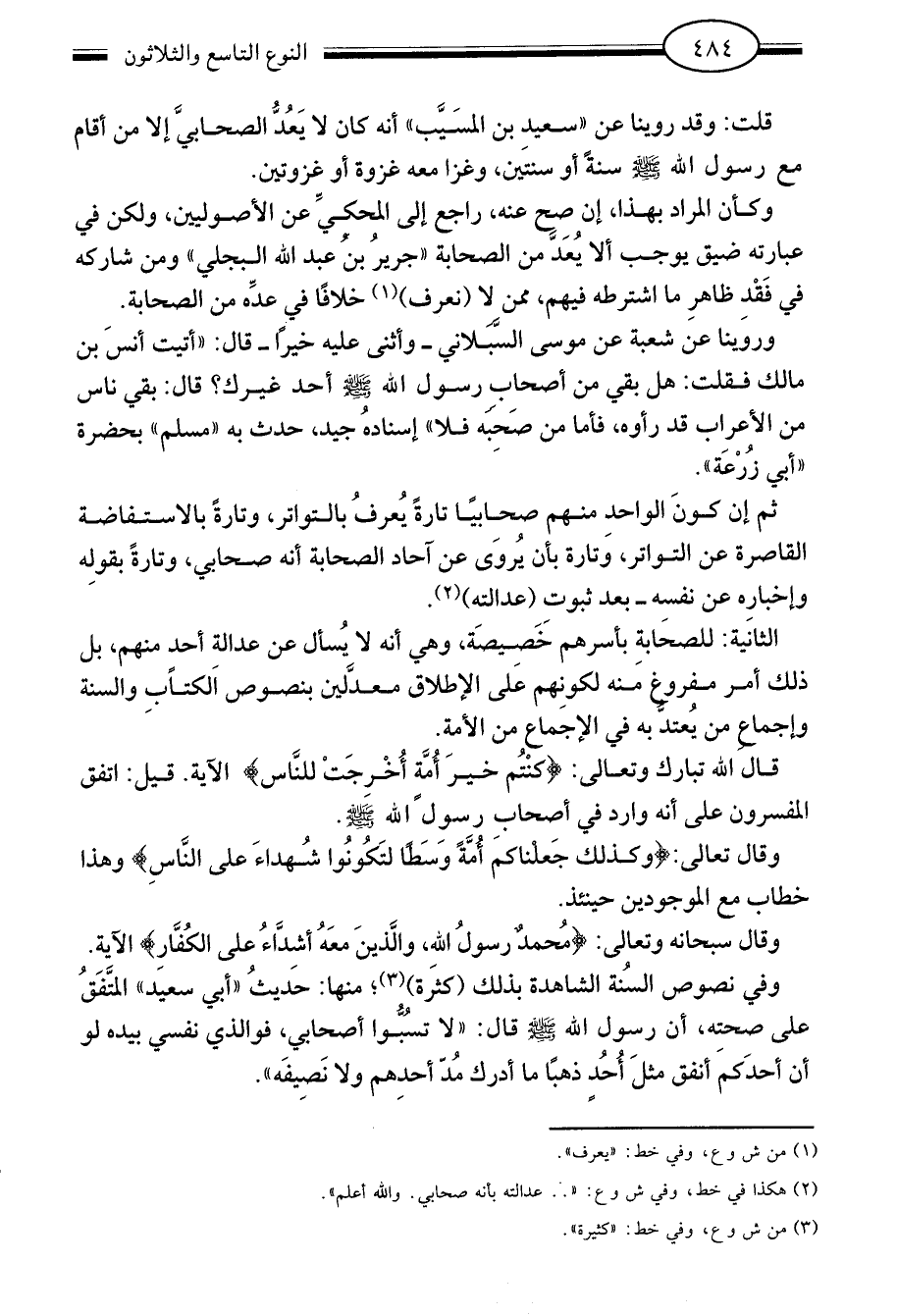 وفي نصوص السنة الشاهدة بذلك "كثرة"3 منها: حديث أبي سعيد المتفق على صحته أن رسول الله صلى الله عليه وسلم قال: "لا تسبوا أصحابي فو الذي نفسي بيده لو أن أحدكم أنفق مثل أحد ذهبا ما أدرك مد أحدهم ولا نصيفه".