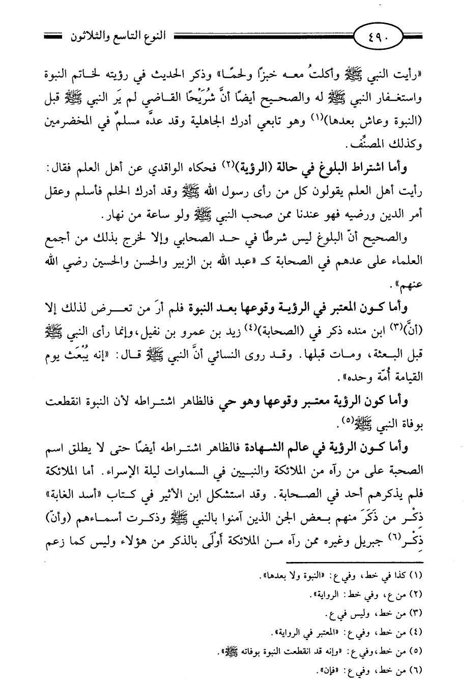 وأما كون الرؤية معتبر وقوعها وهو حي فالظاهر اشتراطه لأن النبوة انقطعت بوفاة النبي صلى الله عليه وسلم5.