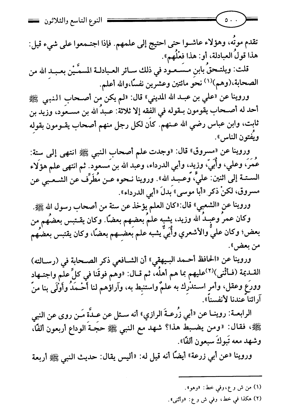 قلت: ويلتحق بابن مسعود في ذلك سائر العبادلة المسمين بعبد الله من الصحابة "وهم"1 نحو مائتين وعشرين نفسا والله أعلم.