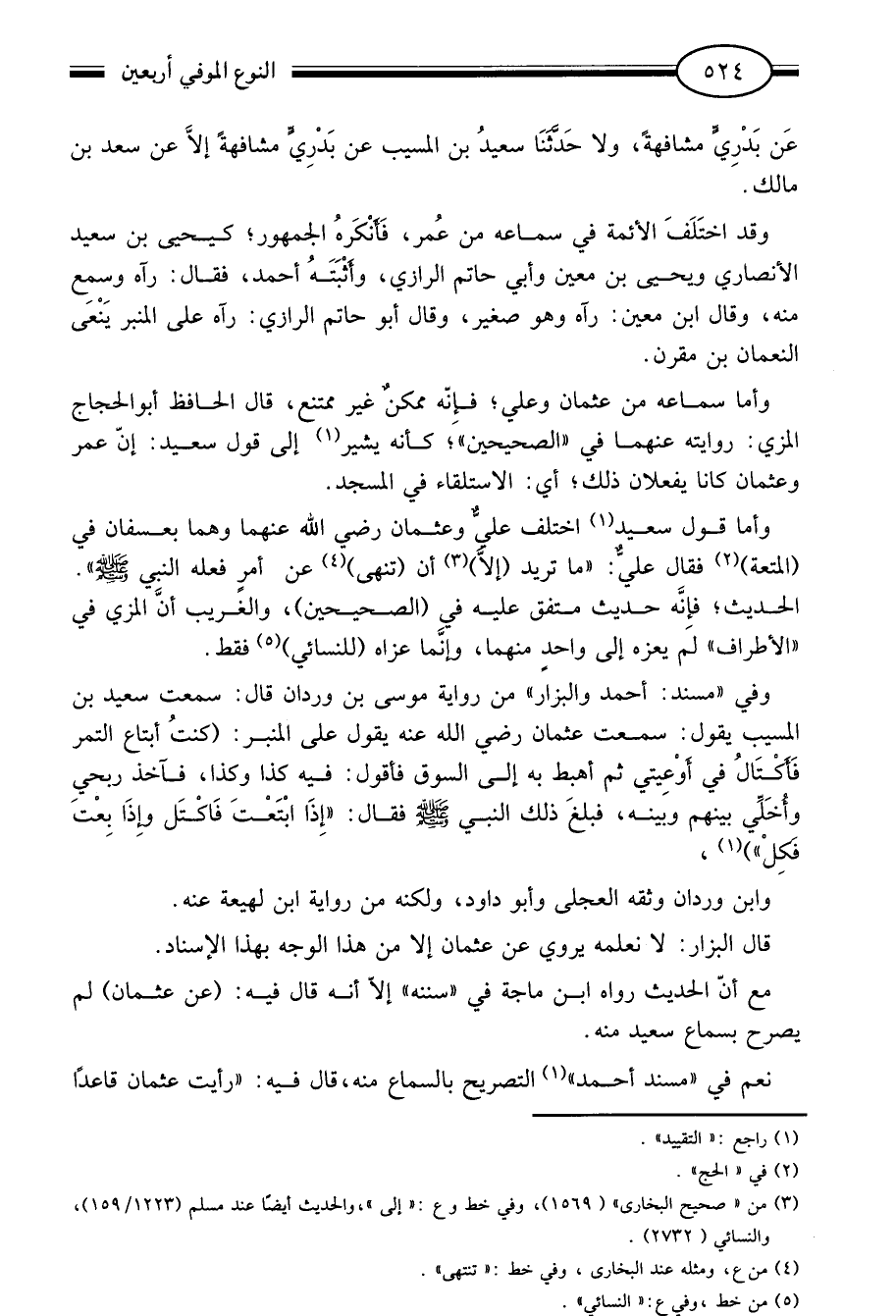 وأما قول سعيد "1"اختلف علي وعثمان رضي الله عنهما وهما بعسفان في "المتعة"2 فقال علي: "ما تريد "إلا"3 أن "تنهى"4 عن أمر فعله النبي صلى الله عليه وسلم". الحديث فإنه حديث متفق عليه في "الصحيحين" والغريب أن المزي في الأطراف لم يعزه إلى واحد منهما وإنما عزاه "للنسائي"5 فقط.