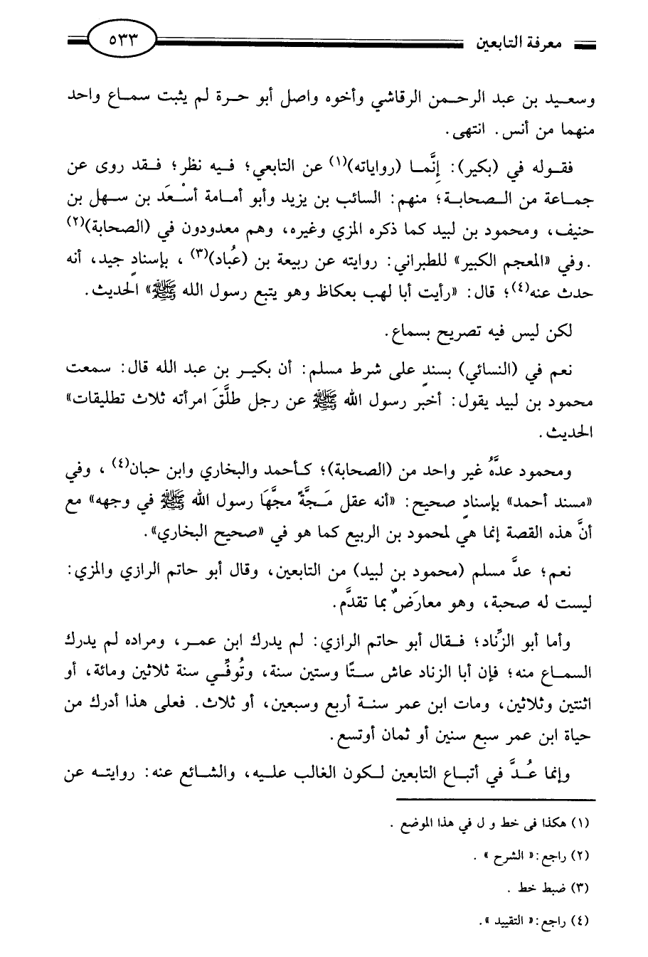 فقوله في "بكير": إنما "رواياته"1 عن التابعي فيه نظر فقد روى عن جماعة من الصحابة منهم السائب بن يزيد وأبو أمامة أسعد بن سهل بن حنيف ومحمود بن لبيد كما ذكره المزي وغيره وهم معدودون في "الصحابة"2 وفي "المعجم الكبير" للطبراني: روايته عن ربيعة بن "عباد"3 بإسناد جيد أنه حدث عنه قال "رأيت أبا لهب بعكاظ وهو يتبع رسول الله صلى الله عليه وسلم" الحديث.